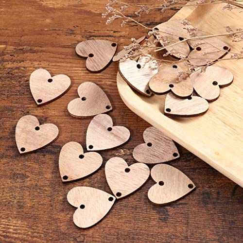 NOLITOY Wooden Board Calendar 50pcs Heart Wooden Slices and 50pcs Iron Loops, Wooden Discs with Holes for Wooden Birthday Reminder Calendar Board DIY