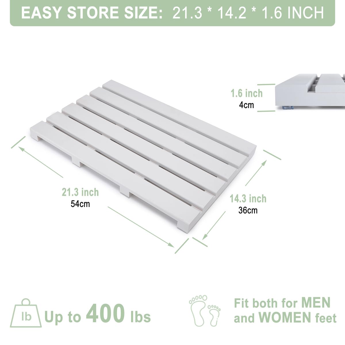 - 【Uesr Friendly Design】 - The slatted surface allows water to drain quickly, keeping floors clean. No more pooling water or soggy mats. Far superior to plastic or rubber shower bathmats.