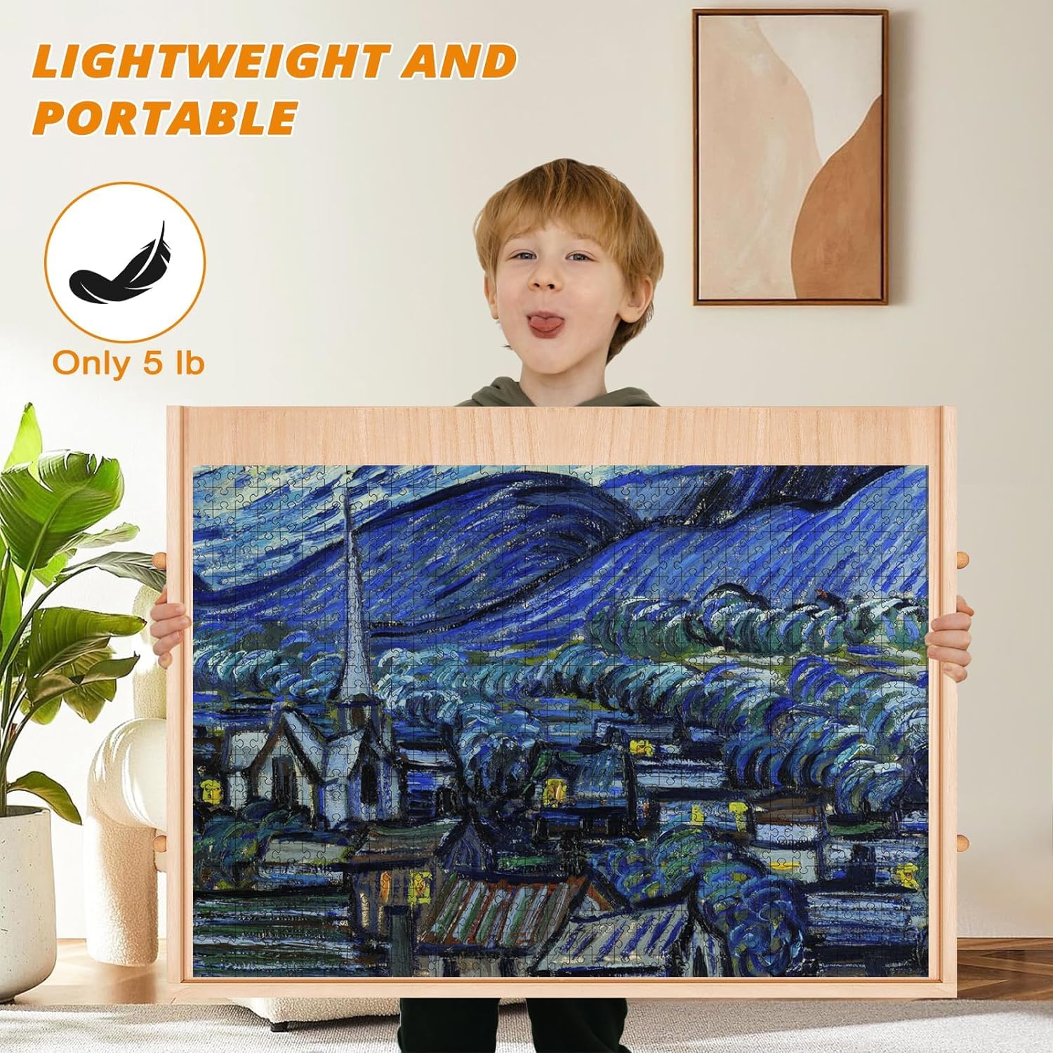 - Size 30'' x 22'' Weight 5lb - NORBASE 1000-piece jigsaw puzzle board is crafted from high-quality sustainable wood using excellent manufacturing techniques. This ensures its long-lasting durability, making it the ideal puzzle table for puzzle enthusiasts like us! The smooth and non-slip surface provides the perfect area for assembling your favorite jigsaw puzzles with friends and family.