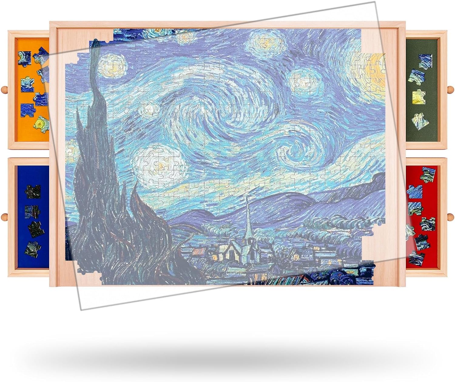 - Protective Cover & 4 Drawers - Our puzzle board features four sliding drawers, enabling you to conveniently sort your puzzle pieces by color, theme, or border. Keep your pieces well-organized as you assemble your puzzle. Each drawer is thoughtfully designed with a handle, ensuring effortless opening and ensuring that no pieces go missing.