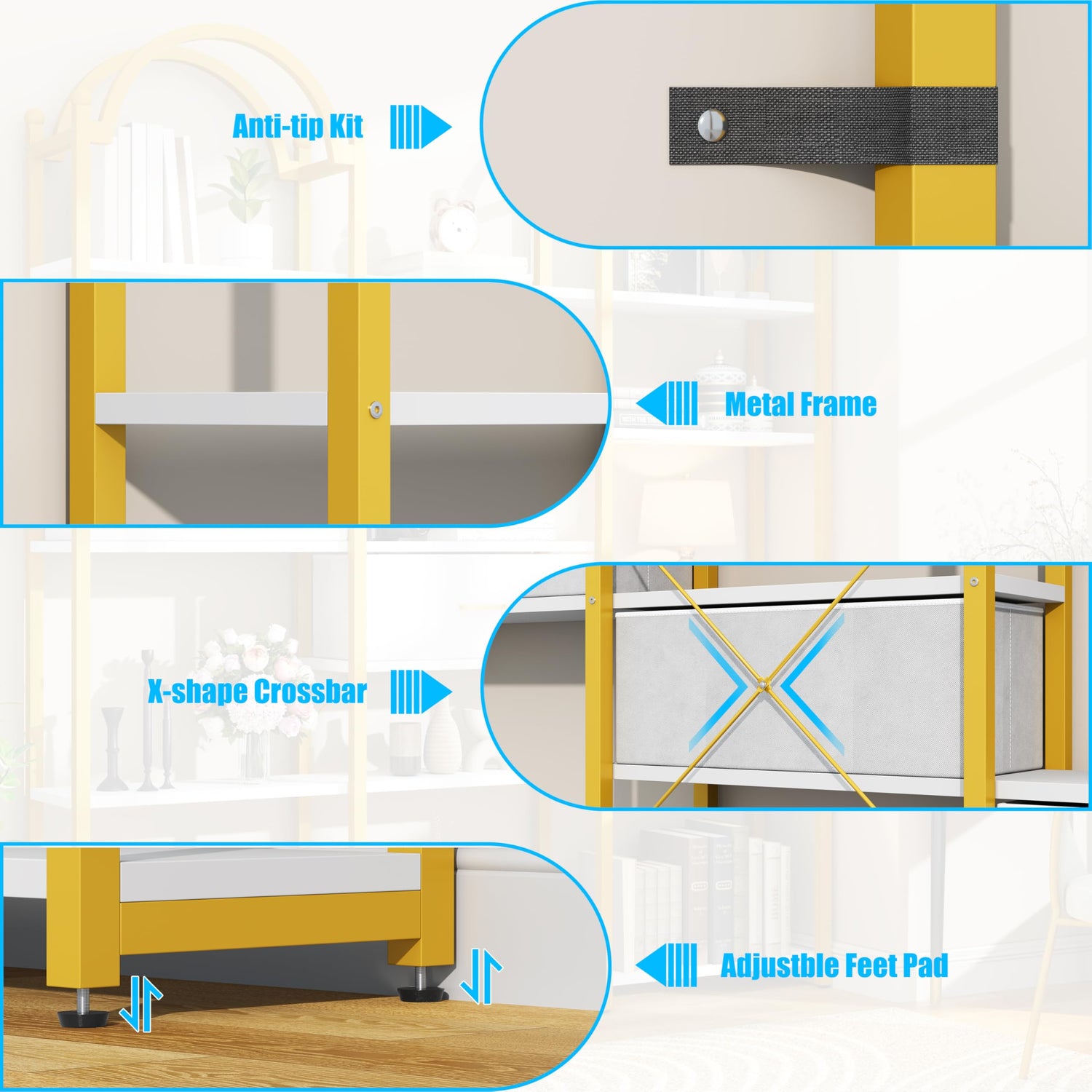 - Large Storage Space: This 6 shelf arched bookcase has 13 open shelves and 3 fabric drawers, providing you with ample storage space, allowing you to easily organize and display your favorite photos, books, collections and decorations, beautifying your space