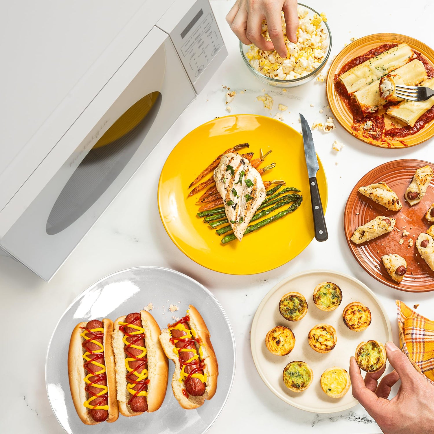 - AUTOMATIC PROGRAMS: Utilize the auto-cook microwave programs to cook your favorite foods easily and quickly: Popcorn, Potato, Pizza, Frozen Dinner, Beverage, and Reheat.