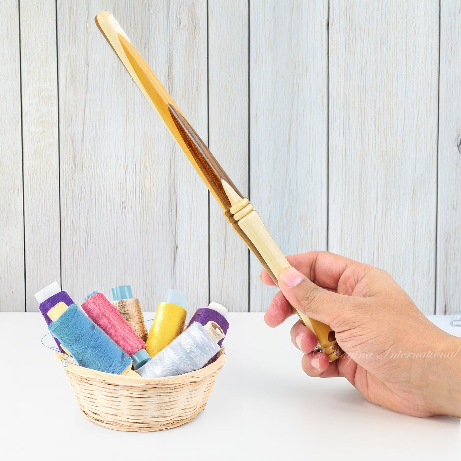 Details: The Yarn Ball Winder by Nagina International is a lightweight, sturdy and functional portable tool used to wind the yarn into informed and consistent balls. You can create either enter pull or outside pull yarn balls. This premium polished Maple Crafted Ball Winder is an inexpensive and premium choice for knitting and crocheting lovers. It will fit perfectly in your hands with its precise dimensions. It is 11 inches long with a width of 0.5 Inches. Crafted using the Exclusive Selected Premium Rosewood, this is one hell of a craft and gift. Use this premium Ball Winder to wind a new ball or fix up a tangled one and this one premium Maple Winder will always help you do the job. The Ball winder features sheen glossy Buffed Wax Polish which is quite resistant to the daily scuffs and scratches and will keep it water-resistant although this is solid wood and water won't affect it at all. Keep exploring Nagina International for more impressive Nautical Kitchen Home Decor Gifts and Collectibles. We have got something for everyone.