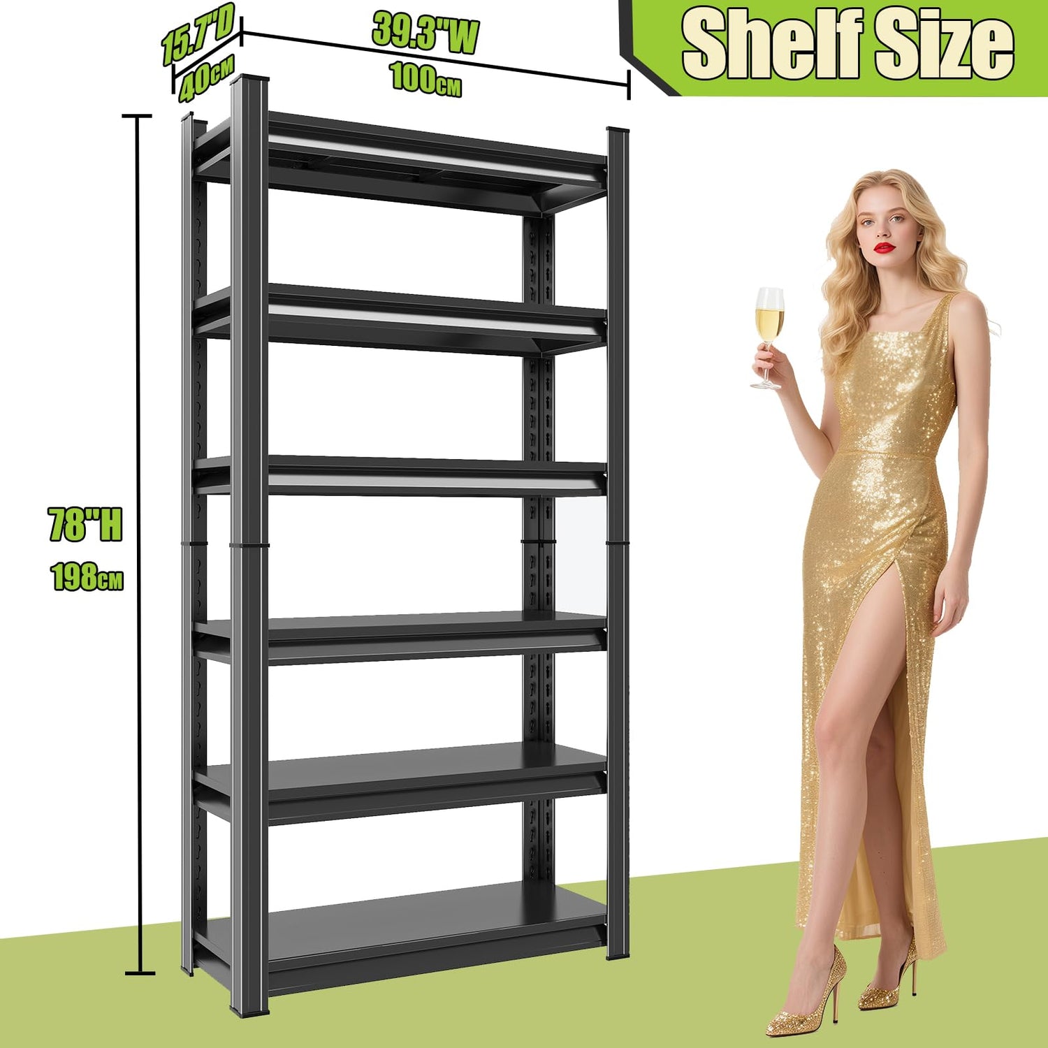 Notmise Book Shelf 6-Tier Tall Bookshelves Metal, Industrial Adjustable Storage Black, Easy to Assemble for Bedroom (78" H * 39.3" W * 15.7" D)