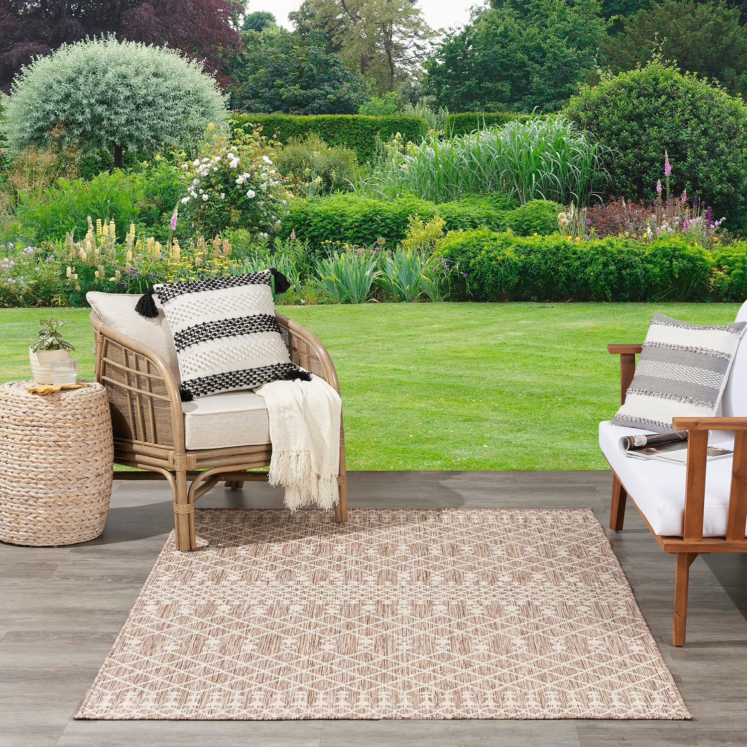 - BOHO STYLE: This Moroccan trellis outdoor rug adds global appeal with a modern twist that complements a variety of décor styles.