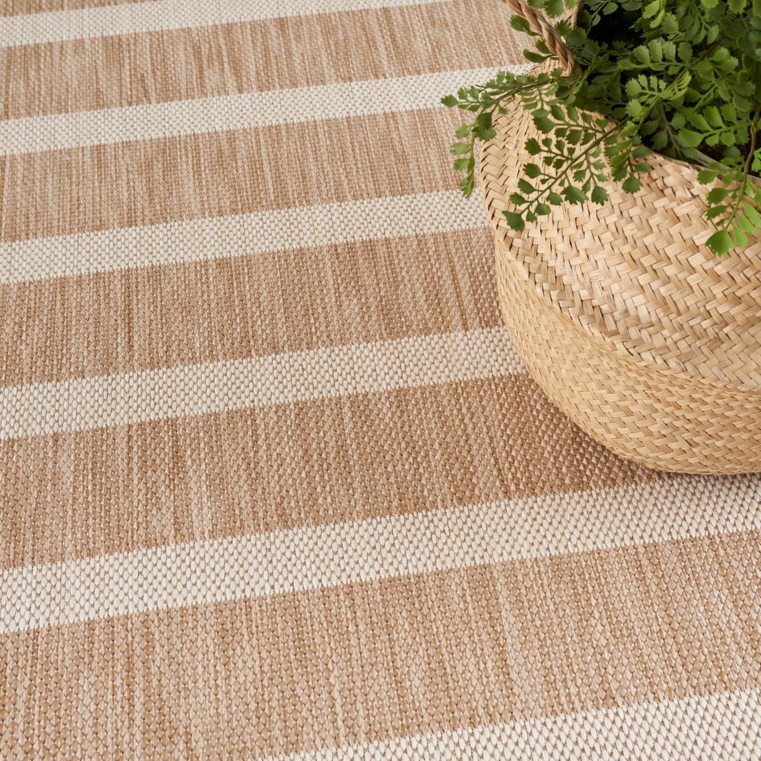 Details: Upgrade your outdoor lifestyle with the rich, textural appeal of a Positano outdoor rug. These flatweave rugs are elegant enough for your living room or dining room, yet durable enough to enjoy outdoors on your porch, patio, or deck! Choose from a spectrum of versatile neutrals and colorful rugs that display exciting variations thanks to the space-dyed, striated yarns. Machine-made from polypropylene for easy cleaning: just hose rinse and air dry. Invite coastal-inspired charm to your home with this beige striped outdoor rug from the Positano Collection. The space-dyed yarns add nuanced variations in color, while the flat weave construction makes placement a breeze. Roll this modern rug onto your patio, deck, or porch to create a cozy and casual conversation area, or add to your living room, dining room, or kitchen for low-maintenance yet eye-catching style. Machine-made from polypropylene yarns that are durable and easy to clean: simply hose rinse and air dry.