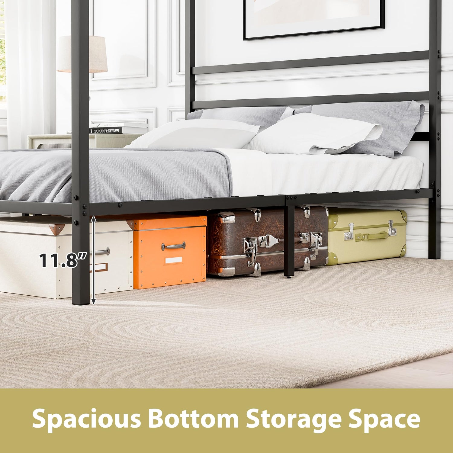 - Sturdy & Durable Construction -- Crafted from high-quality heavy-duty metal, this canopy bed frame is designed to provide optimal support and stability. The robust structure ensures long-lasting durability, making it the perfect choice for a reliable and stylish sleeping experience