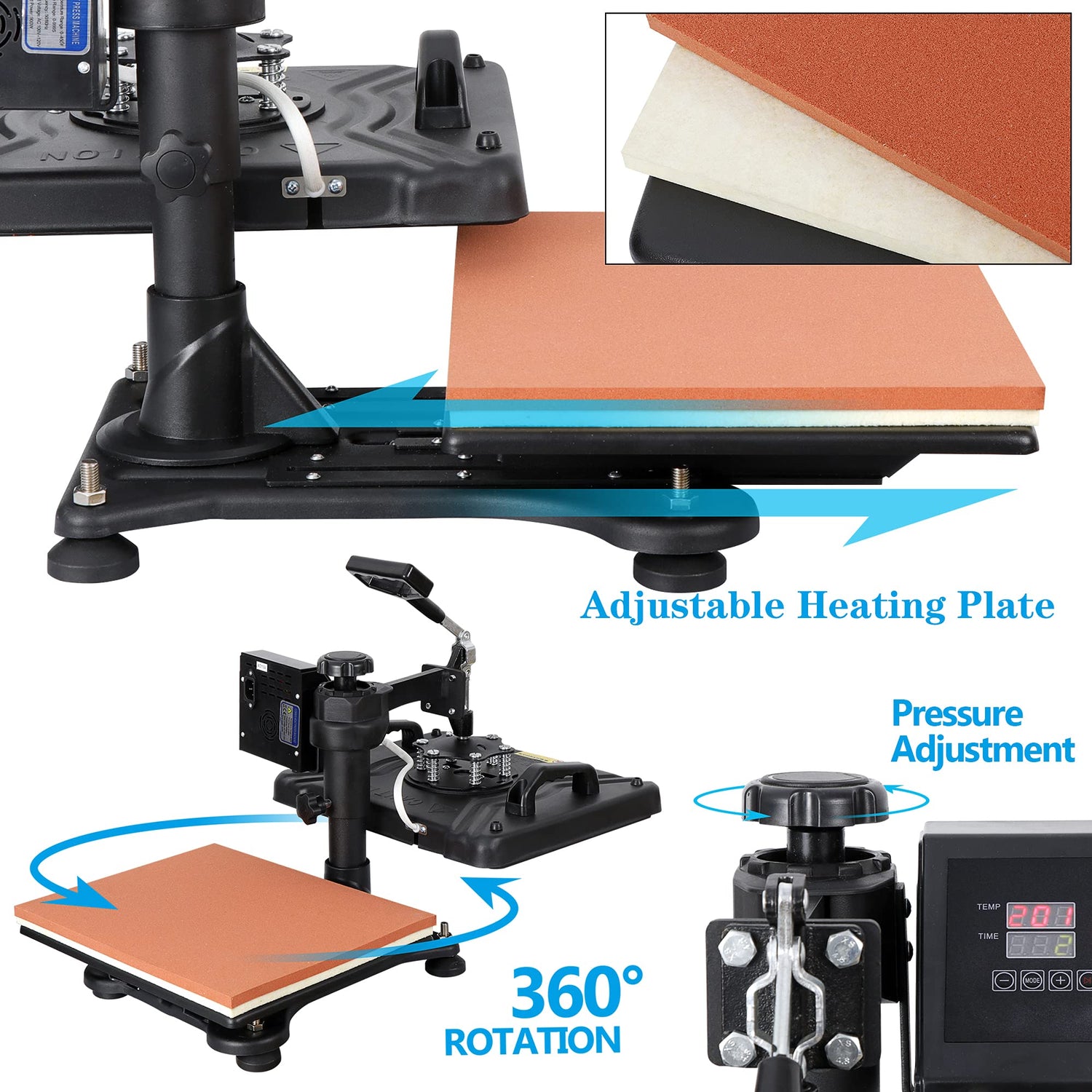 Nouva 5 in 1 Digital Sublimation Heat Press Machine 12x15 Inch - 360° Swing Away Shirt Press Machine, Multifunction Combo Heat Transfer Machine for T Shirts Hat Cap Mug Plate