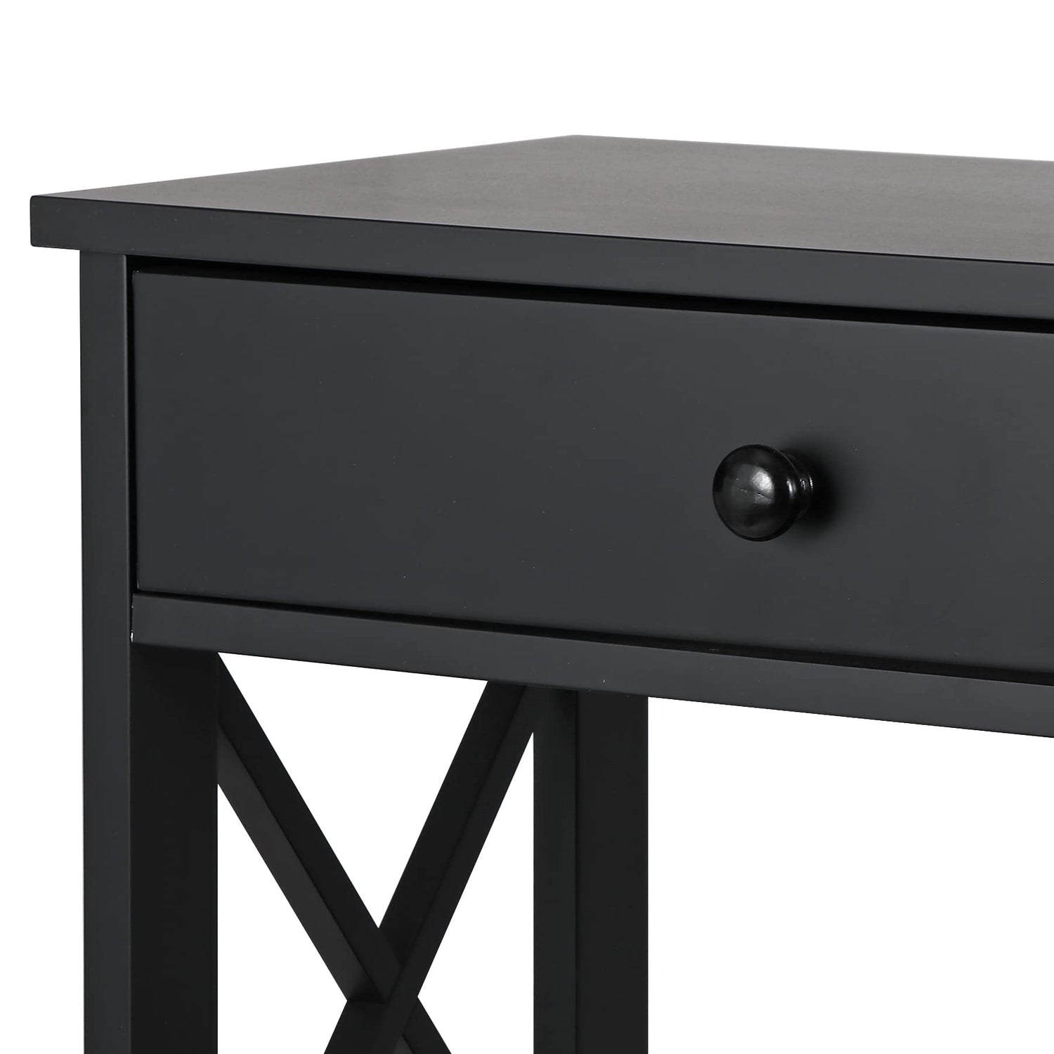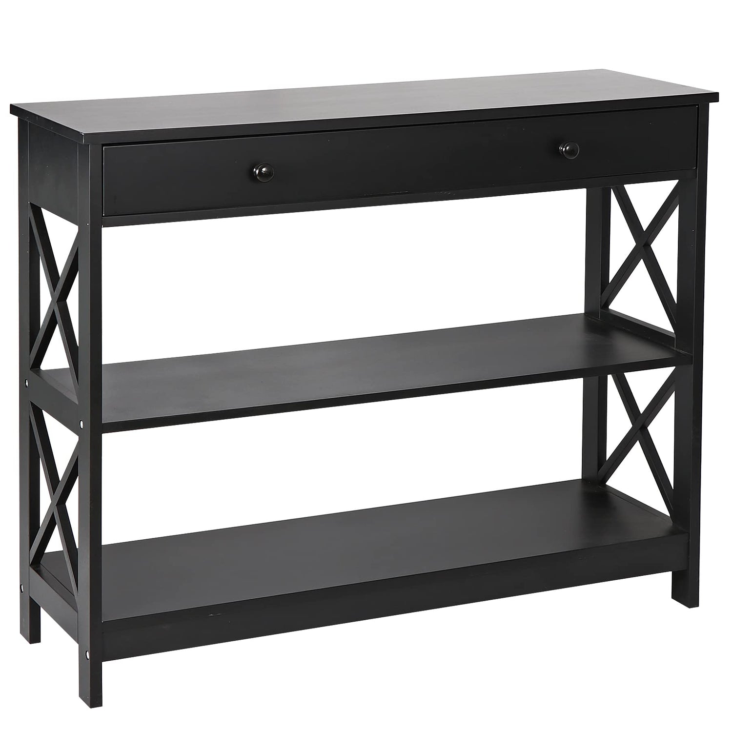 - 【Modern Appearance】This 3-Tier console table with a drawer has the perfect transitional style to fit in a variety of spaces. The compact footprint and generous top is contemporary, the complete black color makes it modern and not flashy. Suitable for entrance hall, hallway, living room, bedroom, study, no matter what style your room is, it can match it properly