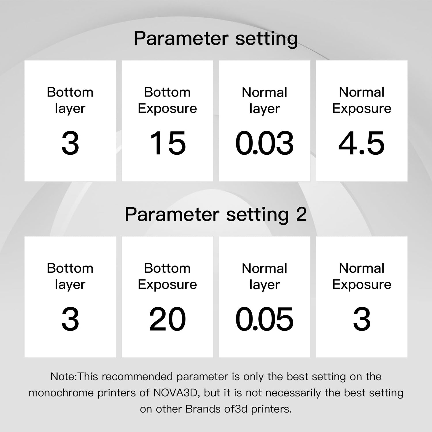 - ✅Low Odor & Printer Pringting resin challenge: NOVA3D Ultra clear transparent resin, with low odor, will not cause any trouble to you. There are some challenges for beginners in the resin printing process. It can print crystal clear and beautiful models, and it will be even cooler with a layer of paint.