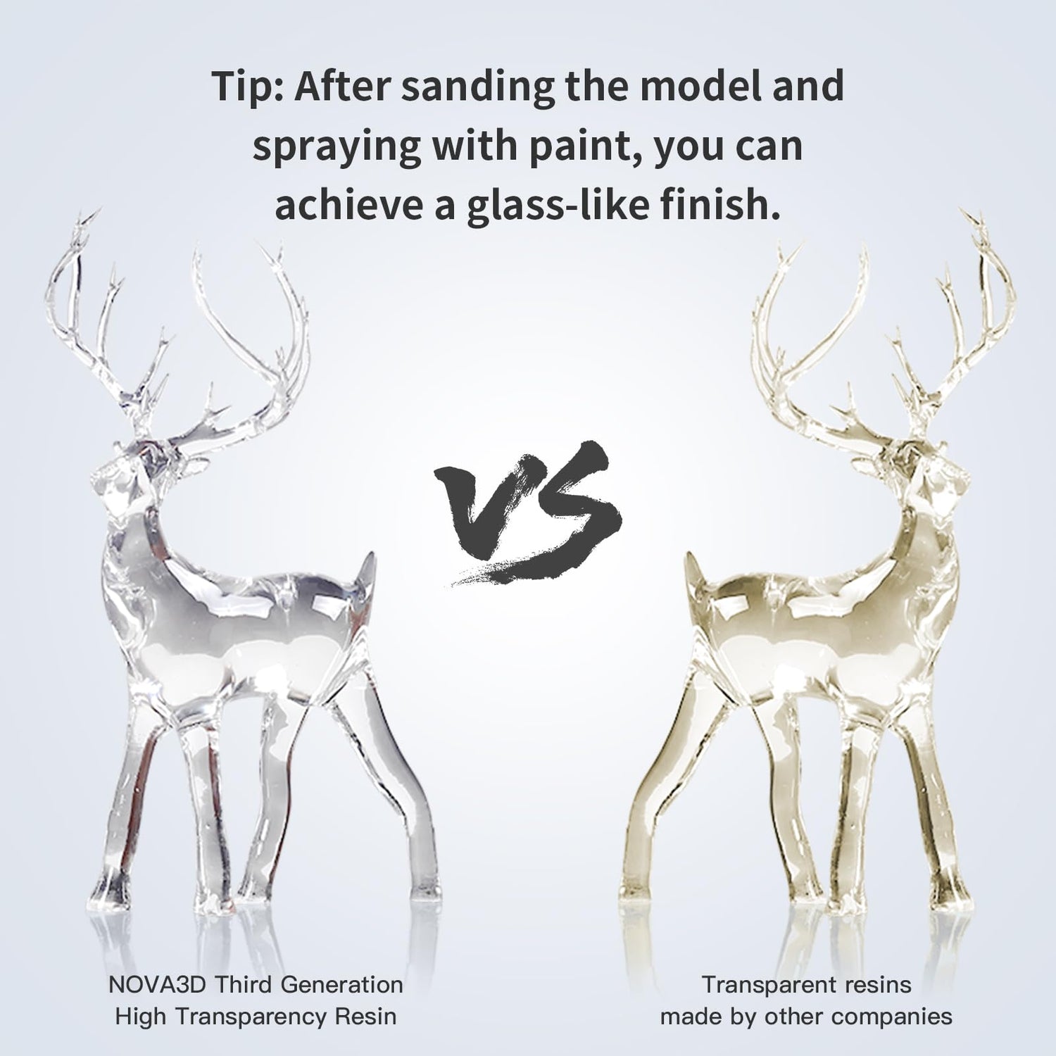 - ✅Non-yellowing: NOVA3D Ultra-Clear Resin will not turn yellow after printing and curing. The transparency resin prints out models with pure and clear colors that look like a work of art. It is as transparent as glass after polishing.