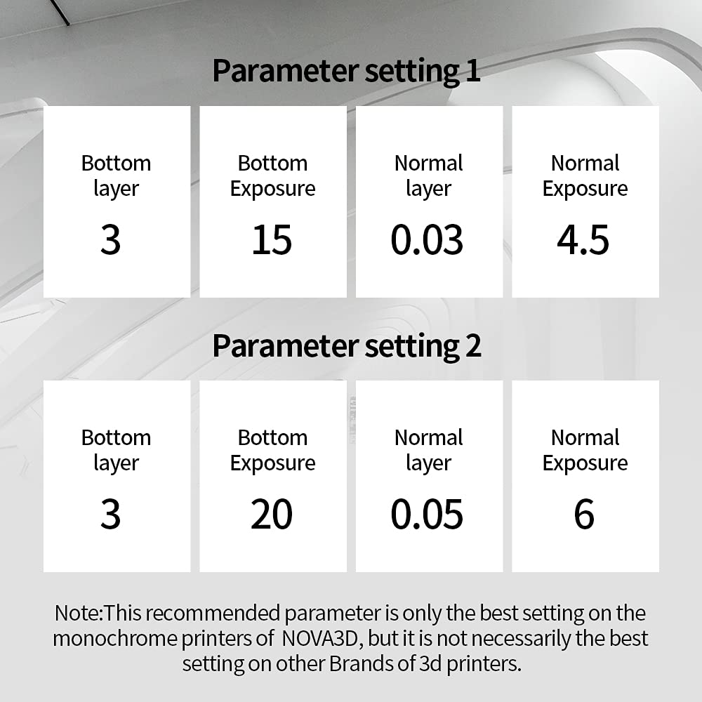 - ✅Low Odor & Printer Pringting resin challenge: NOVA3D Ultra clear transparent resin, with low odor, will not cause any trouble to you. There are some challenges for beginners in the resin printing process. It can print crystal clear and beautiful models, and it will be even cooler with a layer of paint.