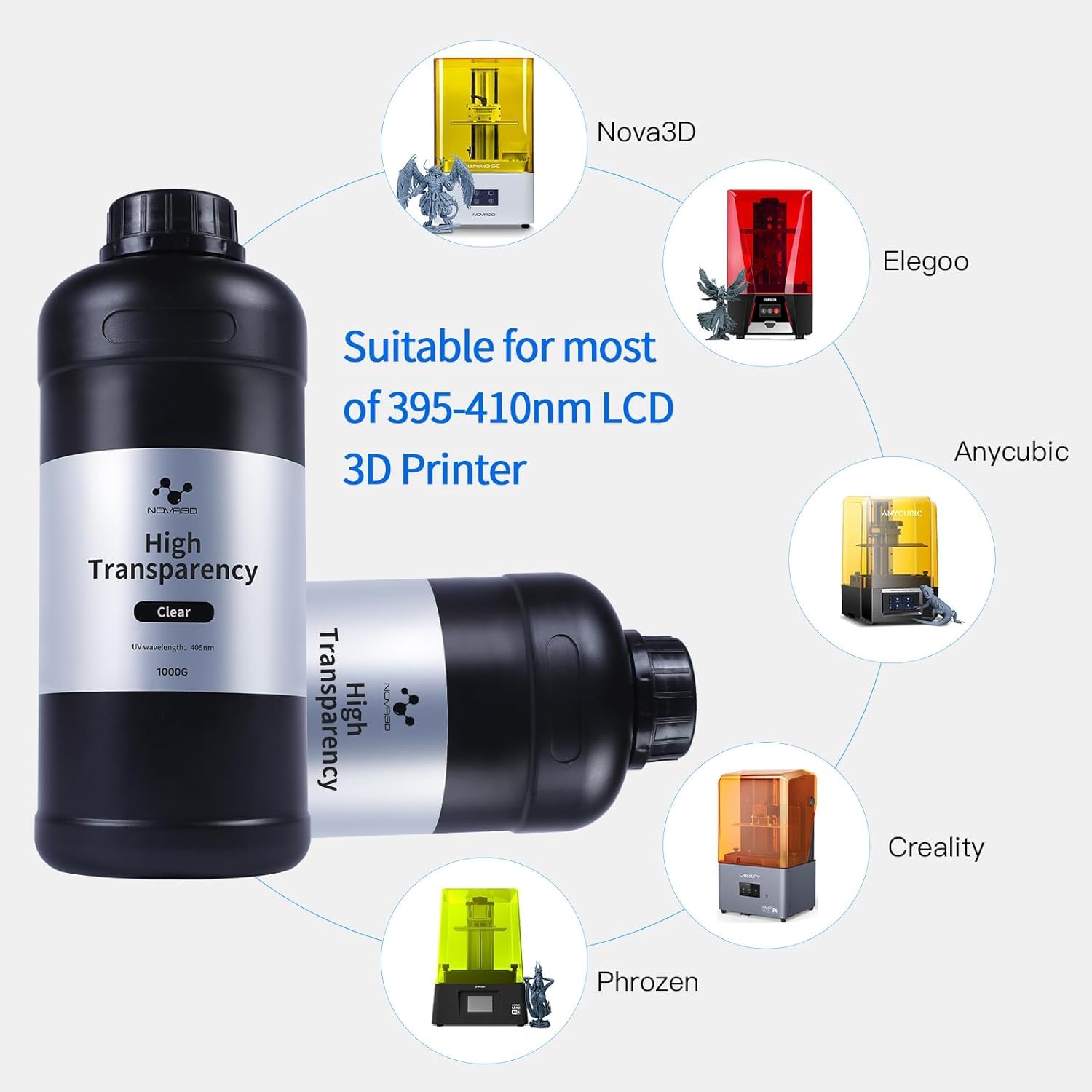 NOVA3D High Clear 3D Printer Resin,Highly Transparent Crystal Clear Tough 3D Printing Resin, Resist Yellowing & Low Odor 405nm UV-Curing Rapid Resin for LCD/DLP Resin 3D Printers (Ultra Clear,