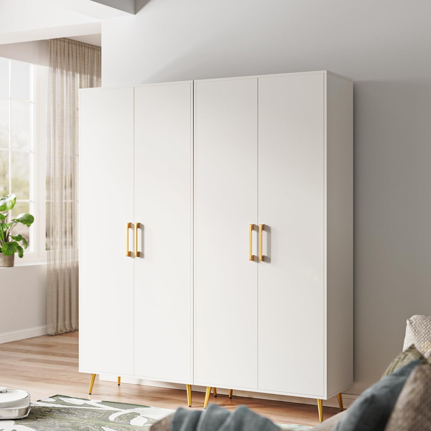 NOVAMAISON Storage Cabinet Set of 2, 69” Tall Storage Cabinet with Doors and Shelves, Freestanding Kitchen Pantry with Gold Handles and Legs, White