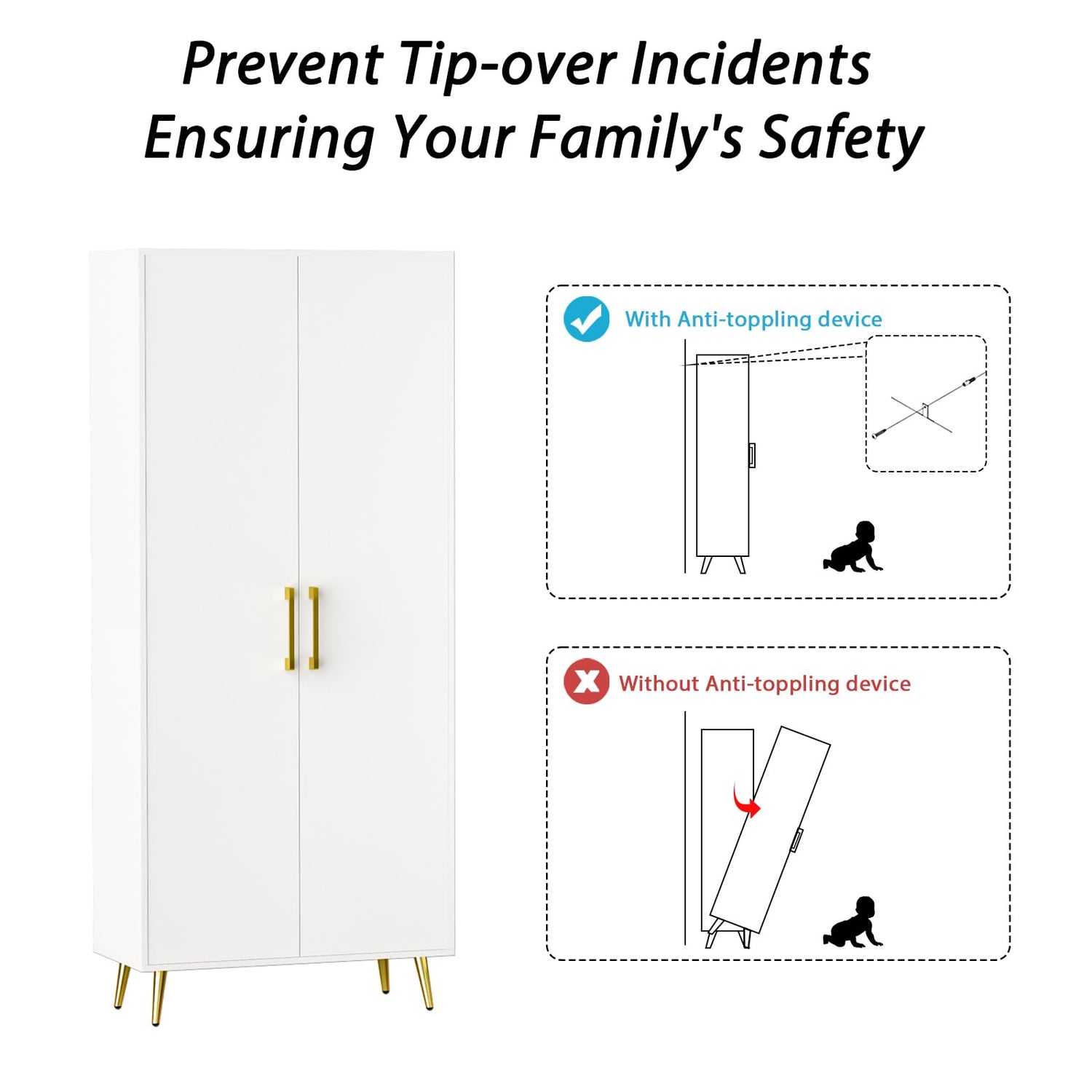 - Extra Storage Space: Need more storage space for limited space? This tall storage cabinet is a perfect choice. There is a good amount of shelf space and 2 of the shelves are adjustable and removable, offering customizable storage options. The white storage cabinet is overall size 15.7"D x 31.5"W x 69"H, perfect height is more convenient to access shelves without stooping.