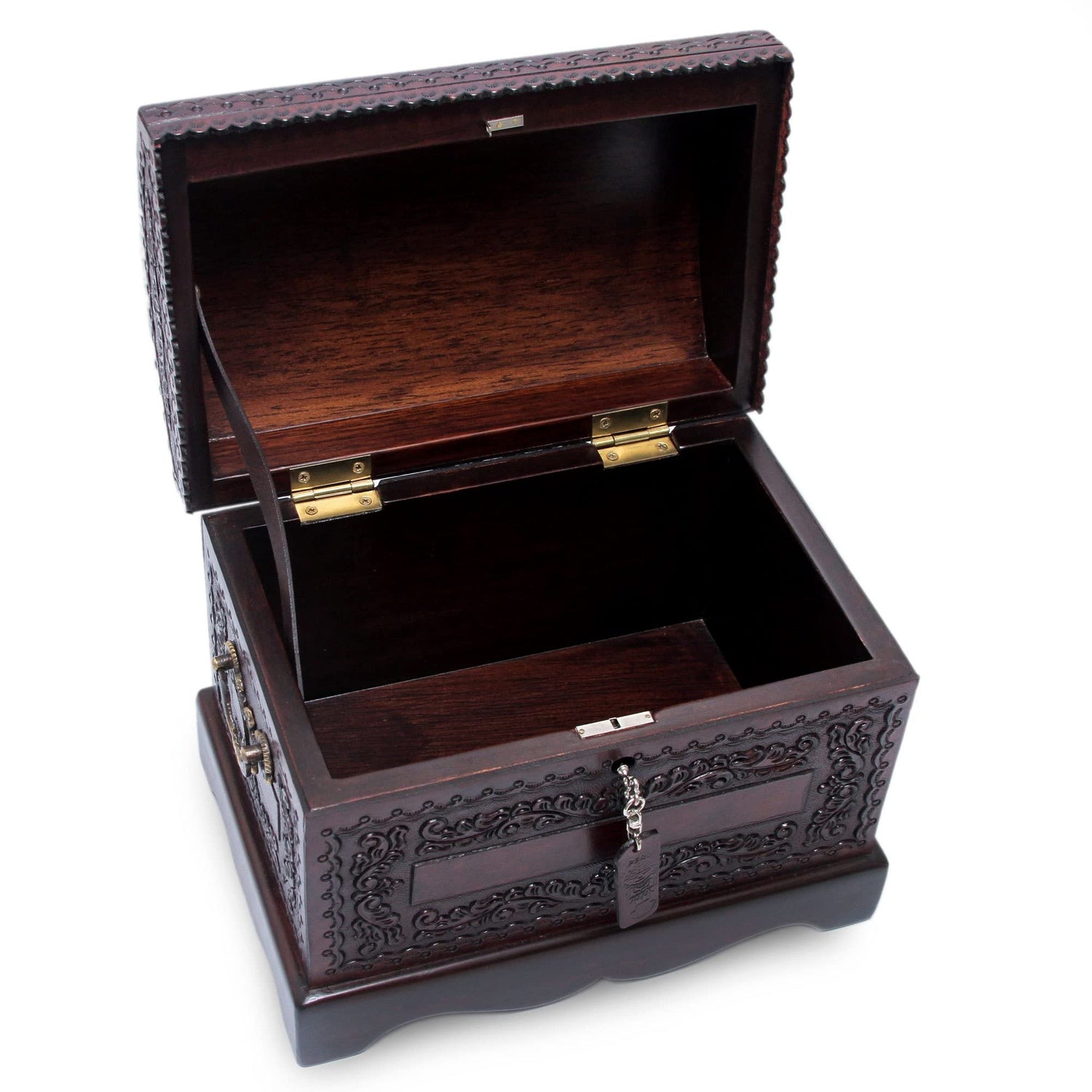 NOVICA Colonial Wood And Leather Jewelry Box, Brown 'Colonial Treasure'