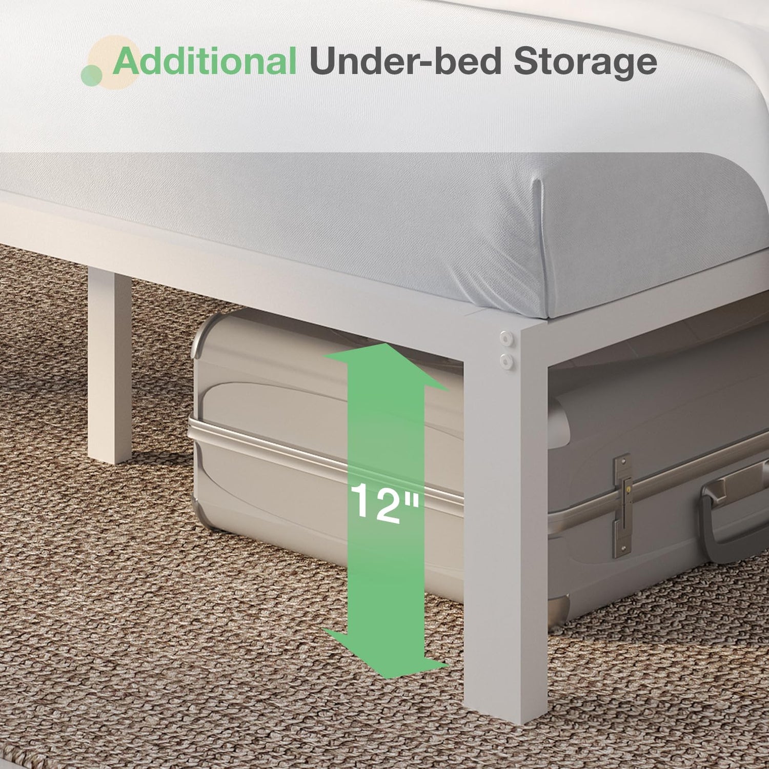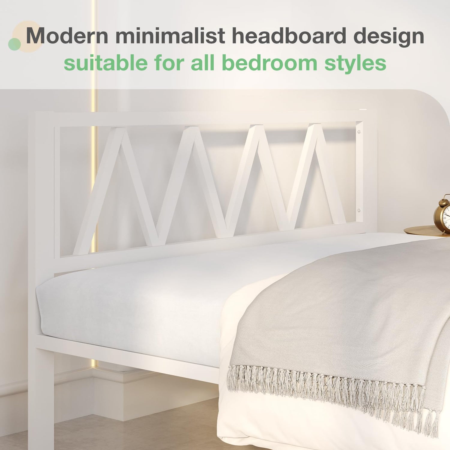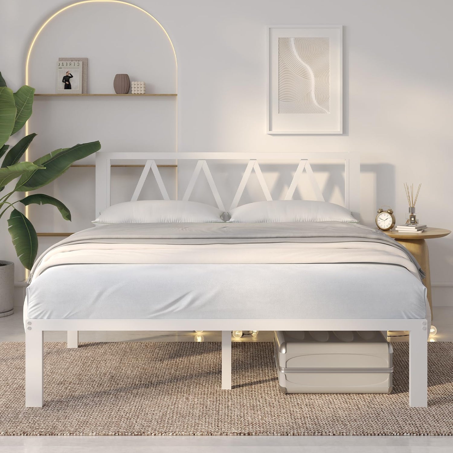 Novilla 14 Inch Full Size Bed Frame with Headboard, White Metal Platform Bed Frame, Full Bed Frame No Box Spring Needed, Easy Assembly