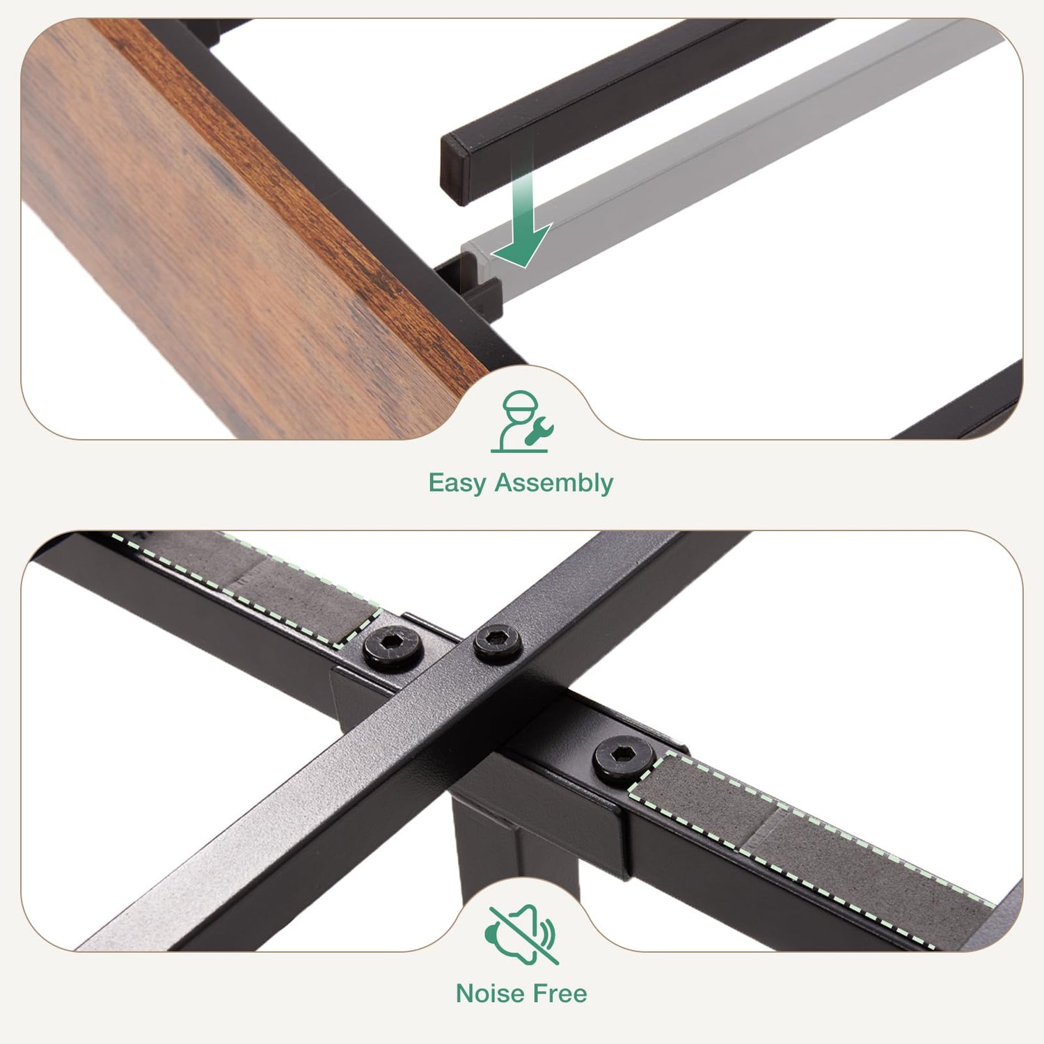 - Stable Structure: The full size bed frame features a robust all-metal support system, complemented by an additional 9 metal bed legs for increased stability, capable of supporting 1000 pounds, ensuring both durability and stability. The slats, with a 5.5-inch spacing, are securely fastened using a bolt-free quick-lock assembly system, facilitating swift assembly.