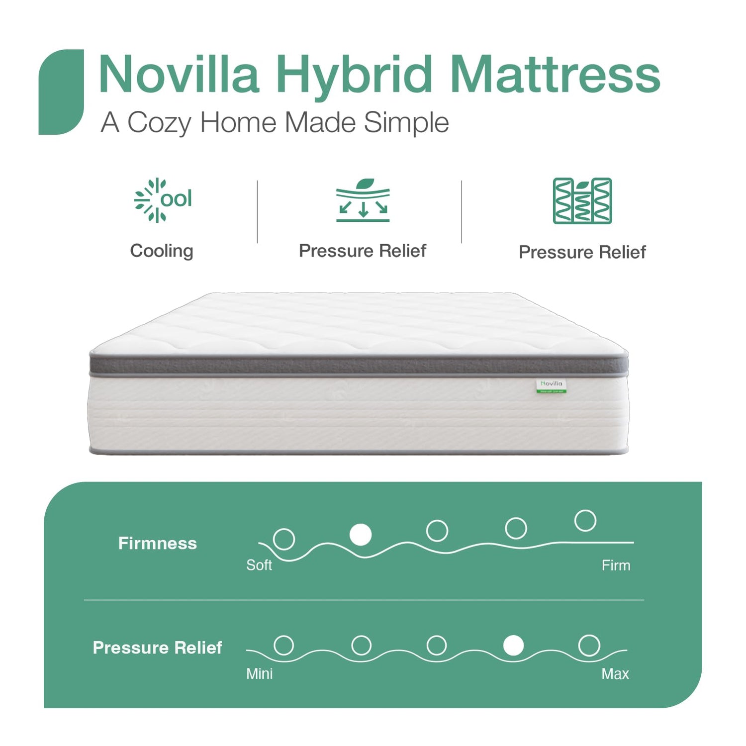 - 【Hybrid construction enhances comfort】: Indulge in the ultimate sleep experience with the Novilla full size mattress, which combines comfort foam and individually pocketed springs. This full mattress will cater to your every need, offering the perfect blend of support and plush. Whatever sleeper you are, this hybrid mattress full will take you to the next level of comfort.
