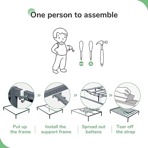 Say goodbye to annoying noise and scratches with the Novilla bed frame's thoughtfully designed features. Velcro connections between the slats and the metal frame minimize noise during movement, resulting in a peaceful night's sleep. Plus, anti-scratch pads on the bed legs effectively protect your flooring.