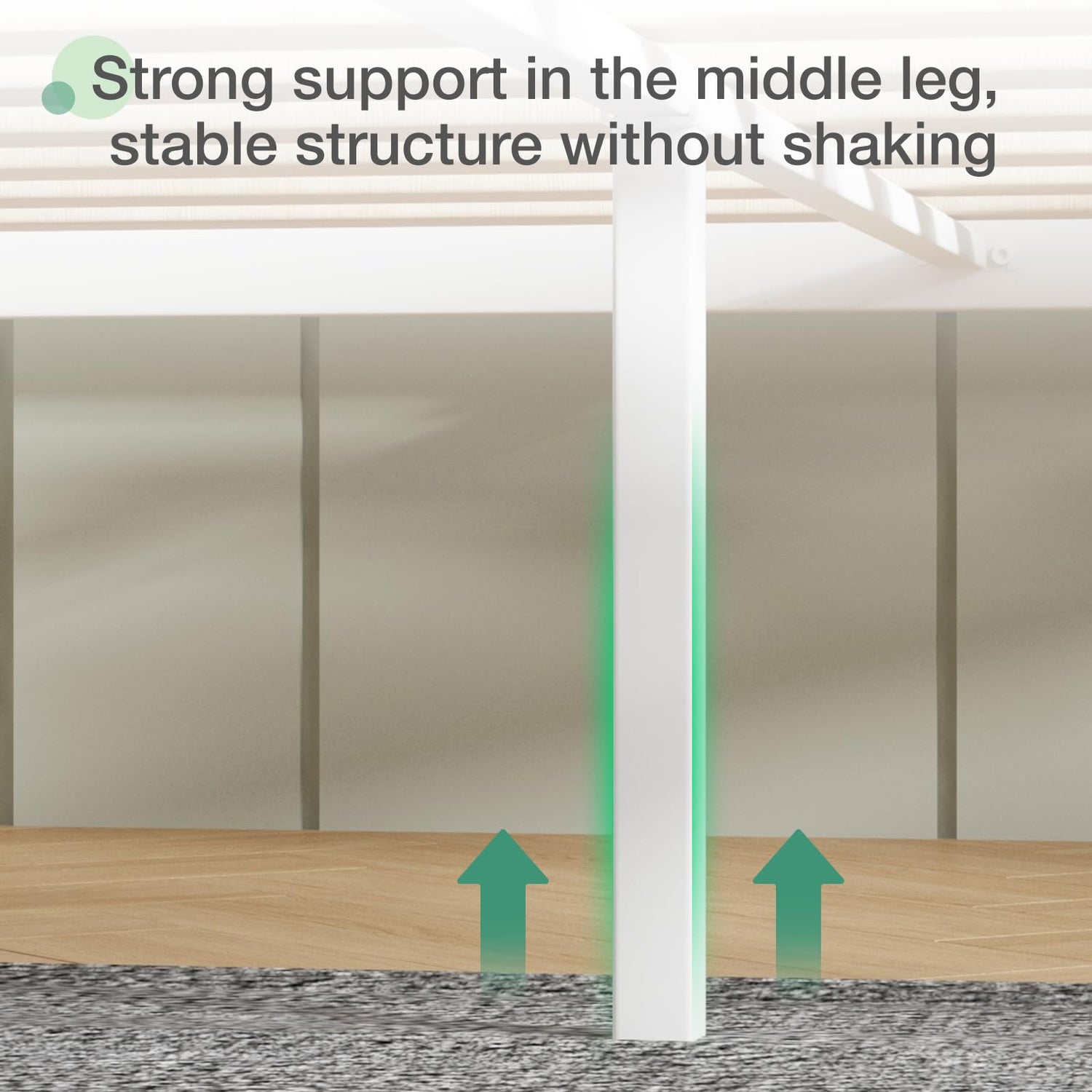 The Novilla bed frame prioritises durability and stability, featuring an additional central leg that provides extra support. Its reinforced steel construction can hold up to 1200 lbs, ensuring a robust and secure foundation for your mattress. This strong design not only extends the lifespan of the bed frame but also guarantees a safe and comfortable night's sleep.
