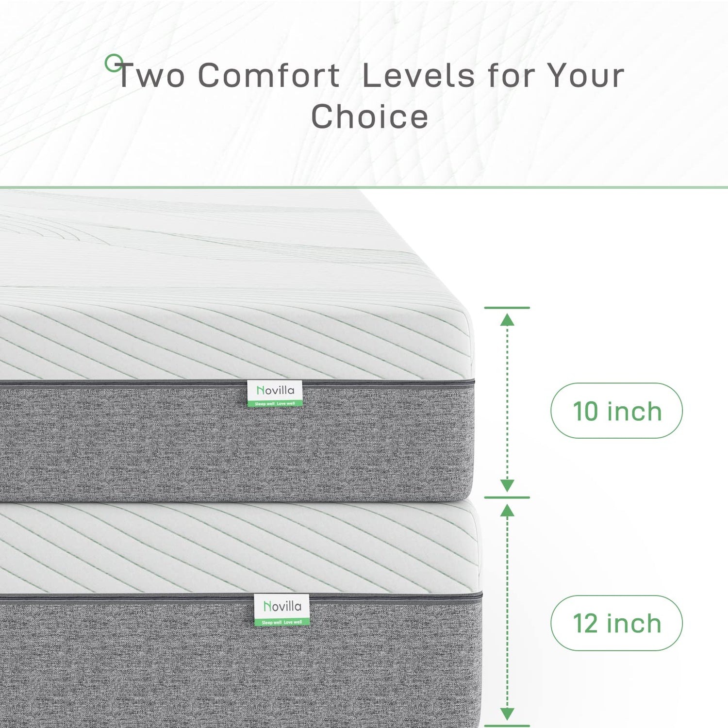 Novilla Queen Size Mattress, 10-Inch Gel Memory Foam Mattress for Good Sleep, Pressure Relieving, Matrress-in-a-Box, CertiPUR-US Certified, Medium Plush