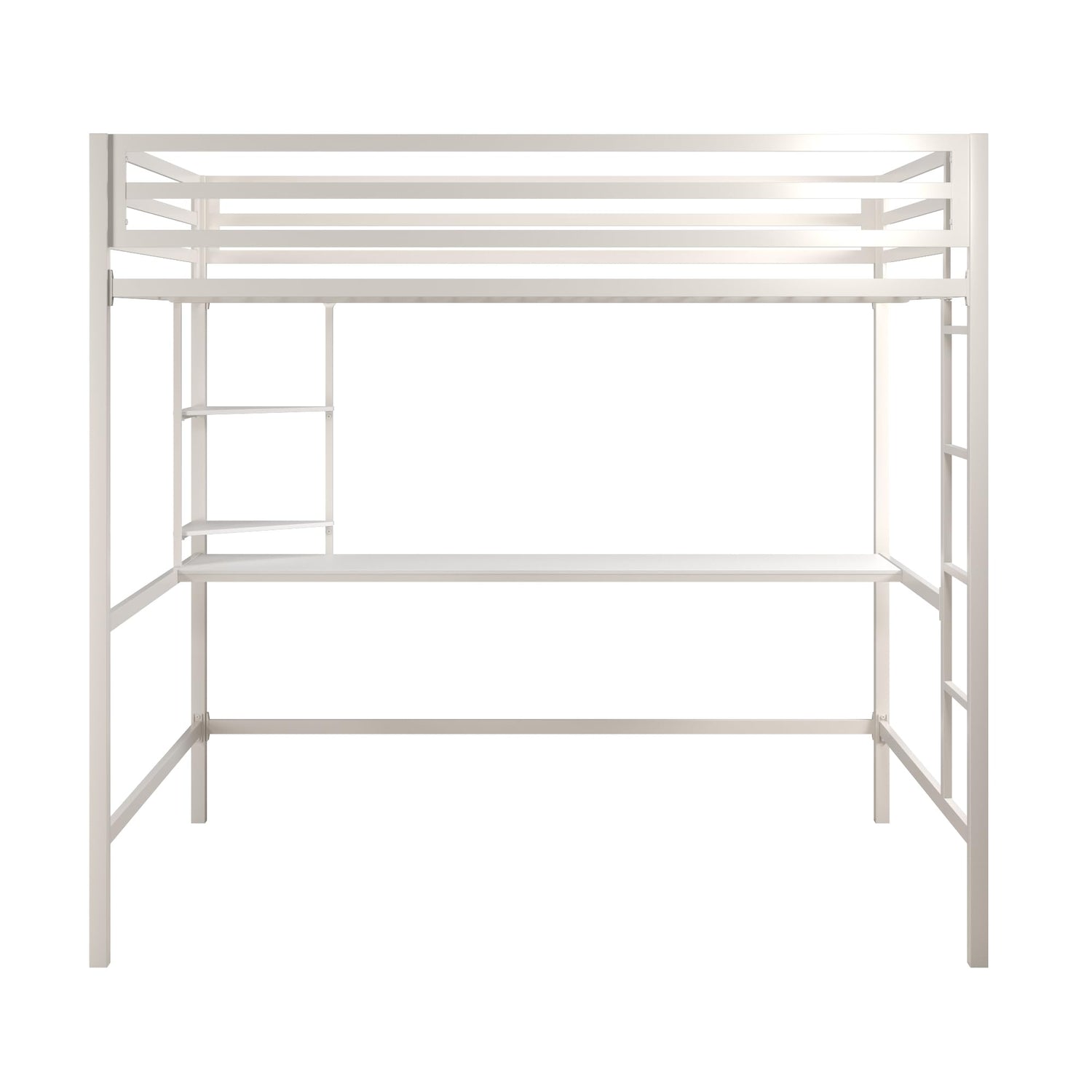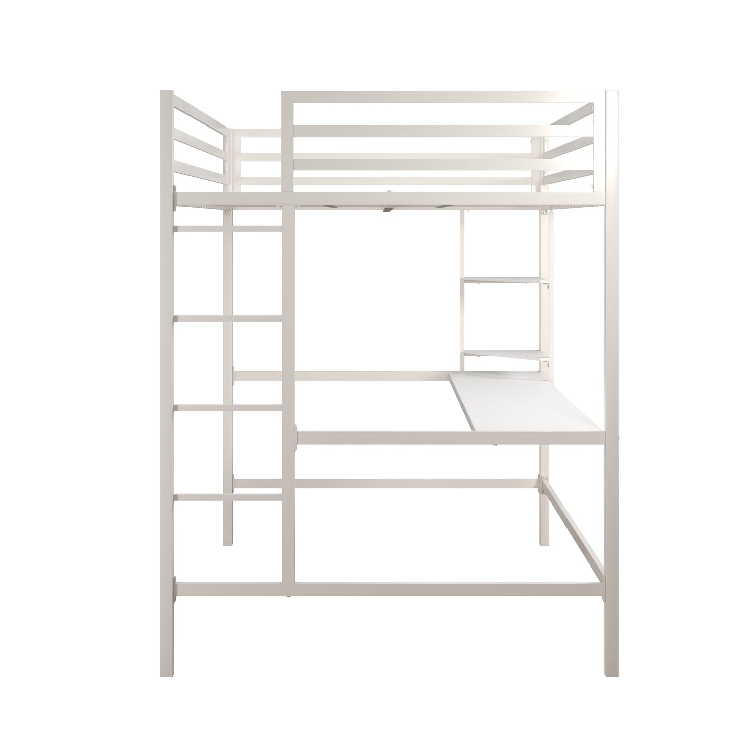 Novogratz Maxwell Metal Full Loft Bed with Desk & Shelves, Off White