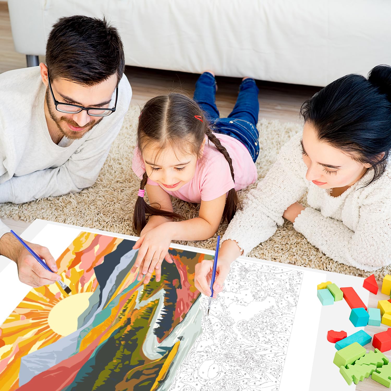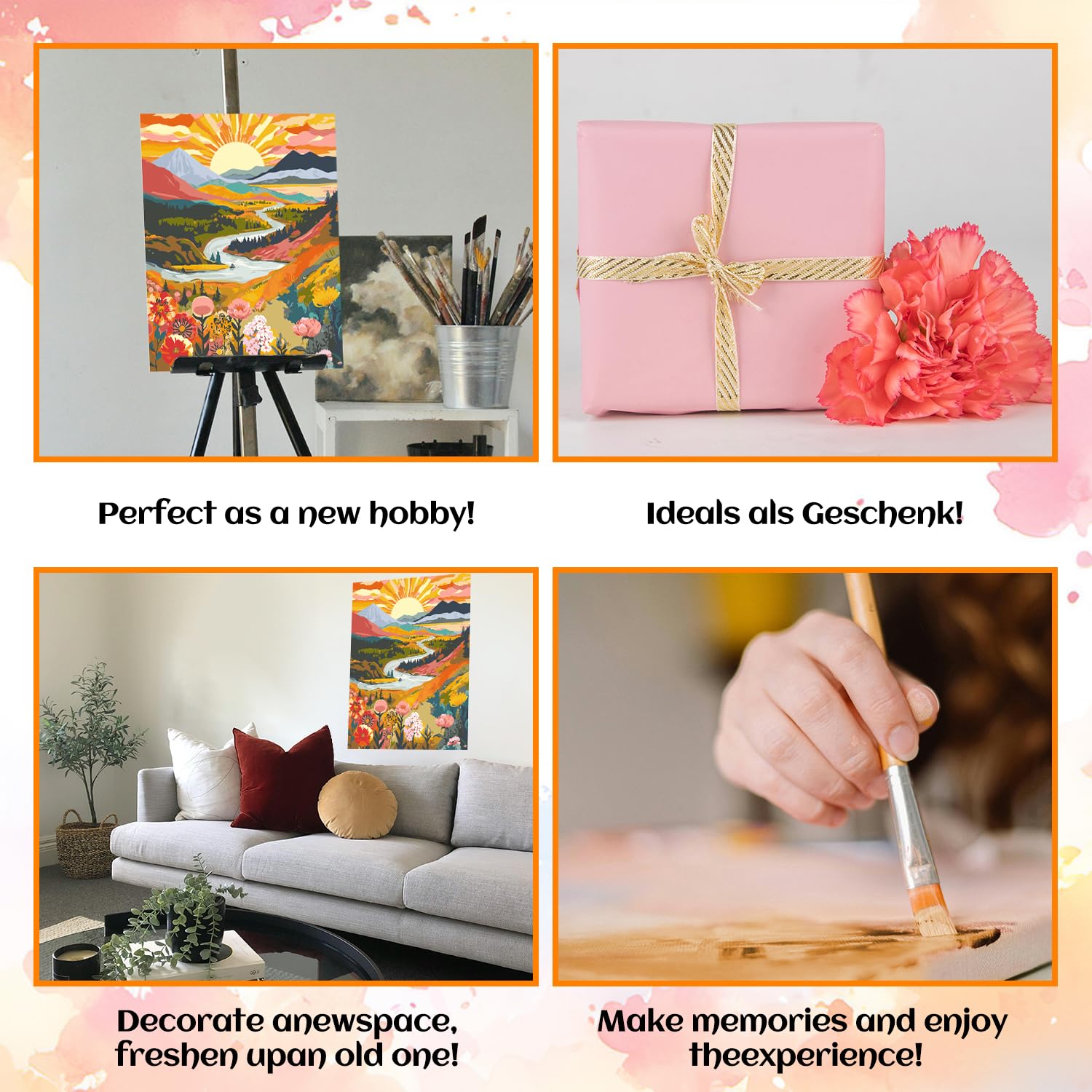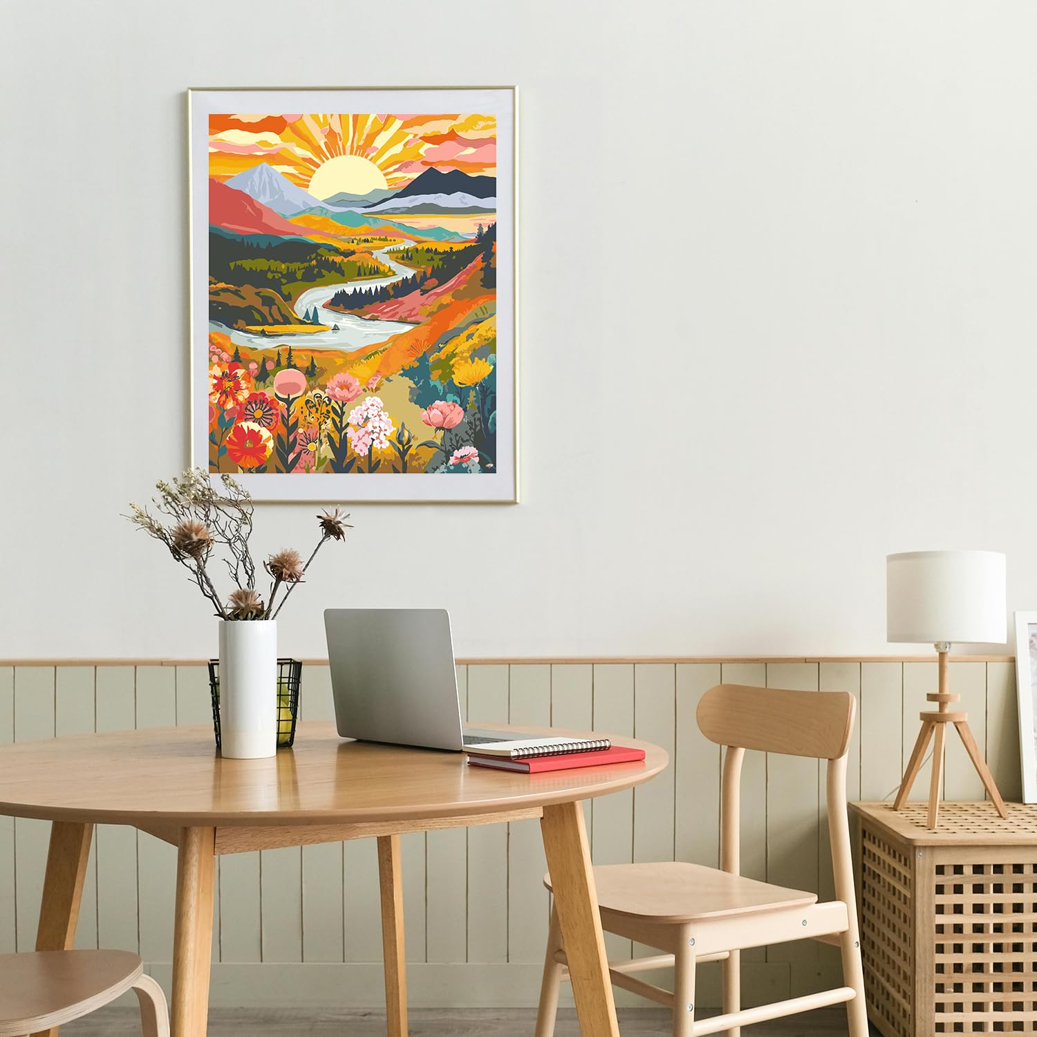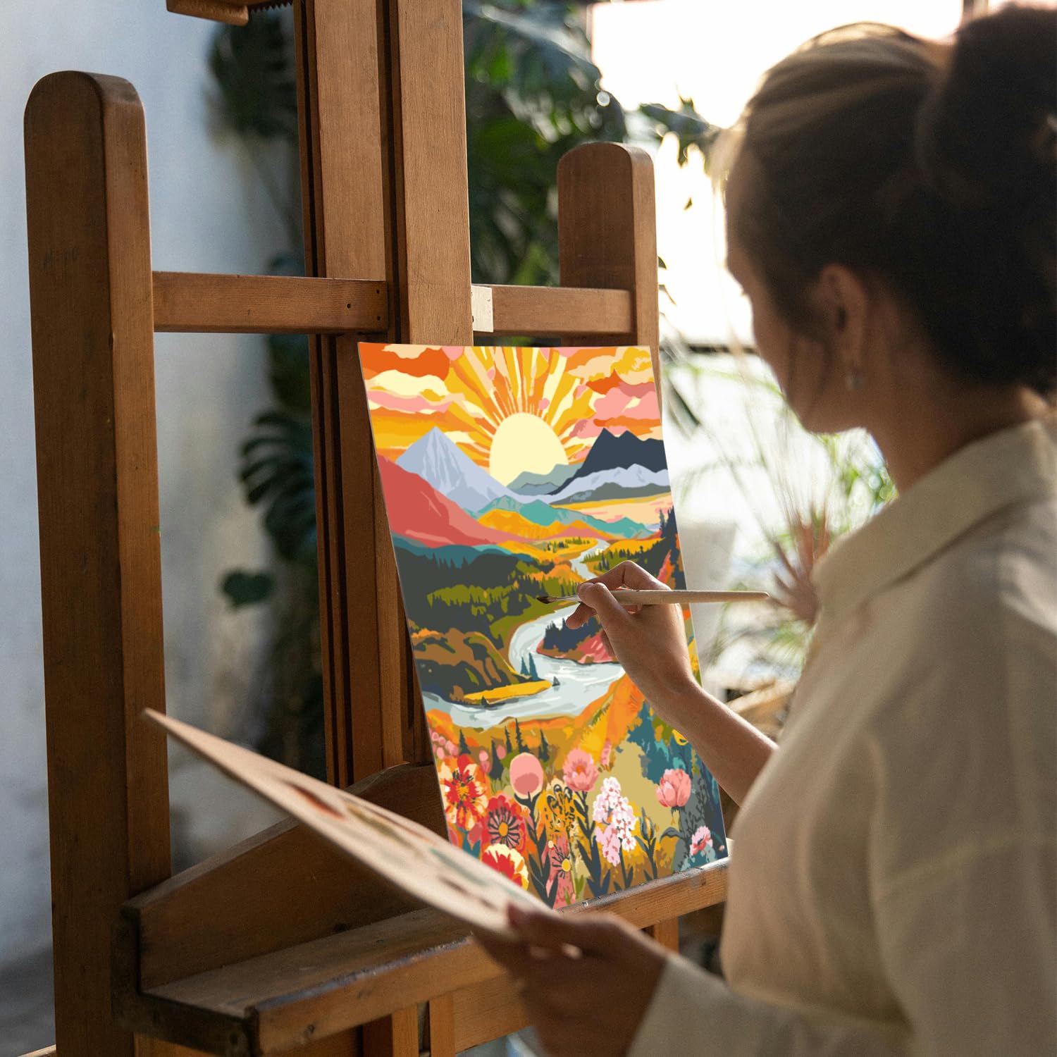 NPCSWXQ Paint by Numbers Kit for Adults Beginners, Sunrise Mountains and Rivers Landscape Painting Crafts Number Art Paint Kits for Home Wall Bedroom Study or Office Decor Gift 16x20Inch