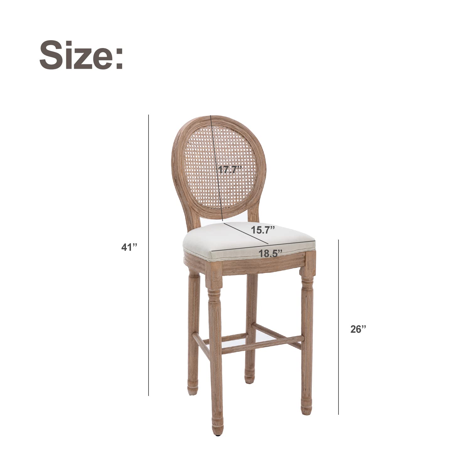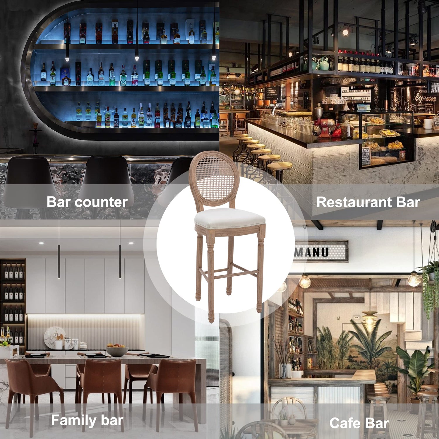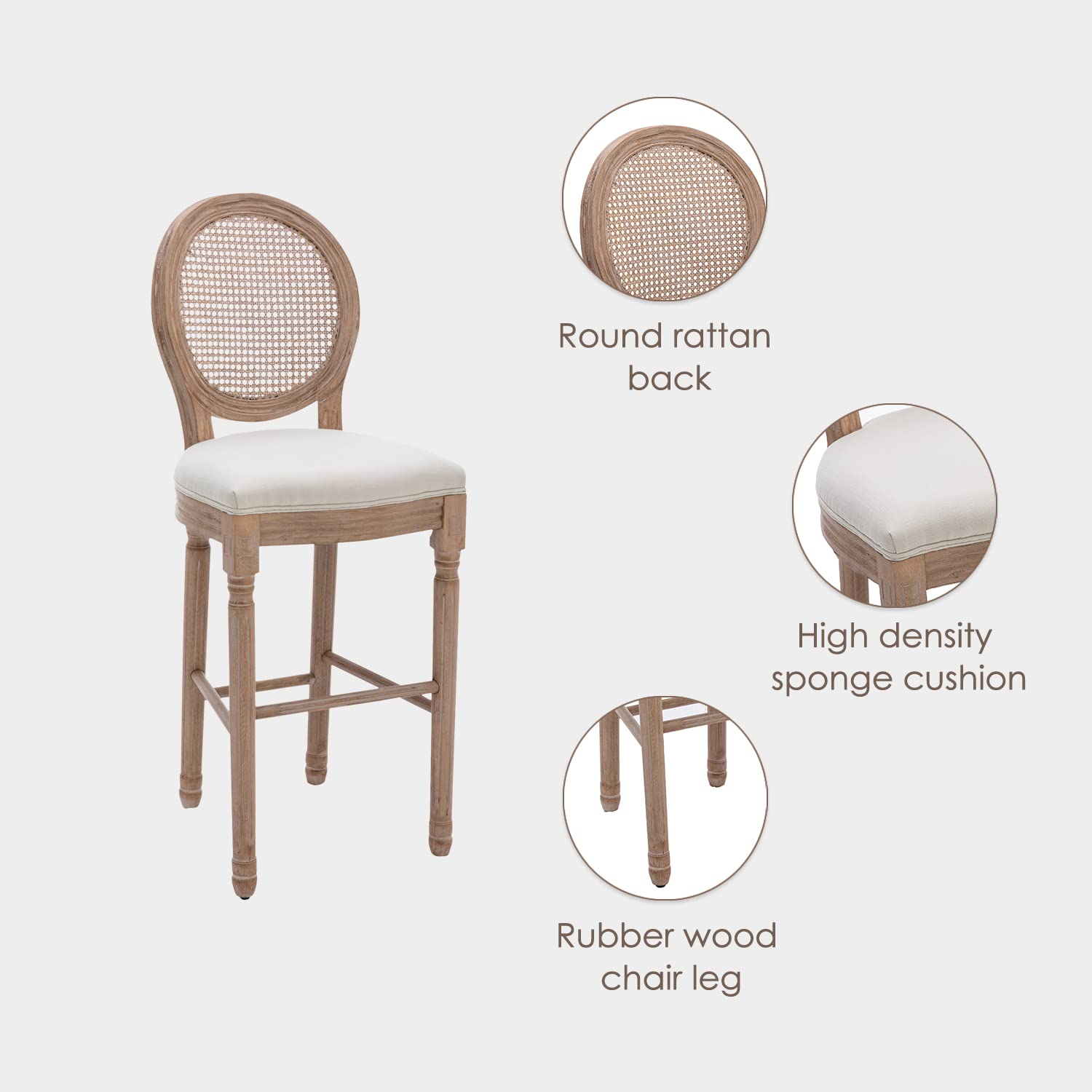 Nrizc French Country Bar Stools Set of 2, Farmhouse BarStools with Solid Wood Frame and Upholstered, Rattan Back Kitchen Bar Stool for Dining Room, Kitchen