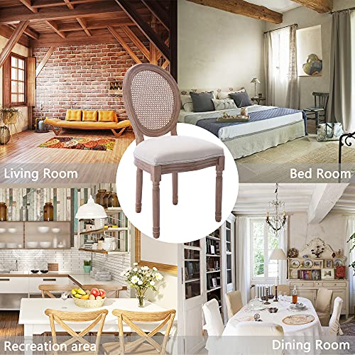 Nrizc French Country Dining Chairs Set of 4, Farmhouse Fabric Chairs with Round Back, Rattan Dining Chair, Oval Side Chairs for Dining Room/Living Room/Kitchen/Restaurant