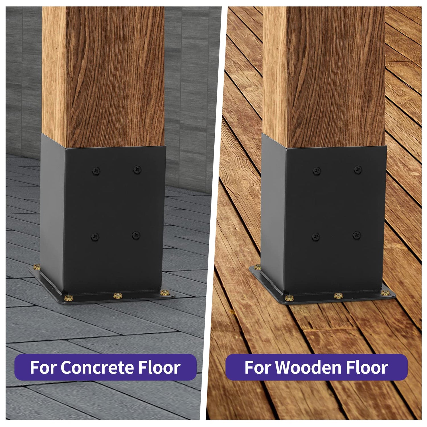 - Material Of Post Base:The post base is made of solid steel with a smooth black powder-coated surface for water and rust resistance. The black coating can improve the appearance of the post bracket aesthetically, extending the service life of the post base.