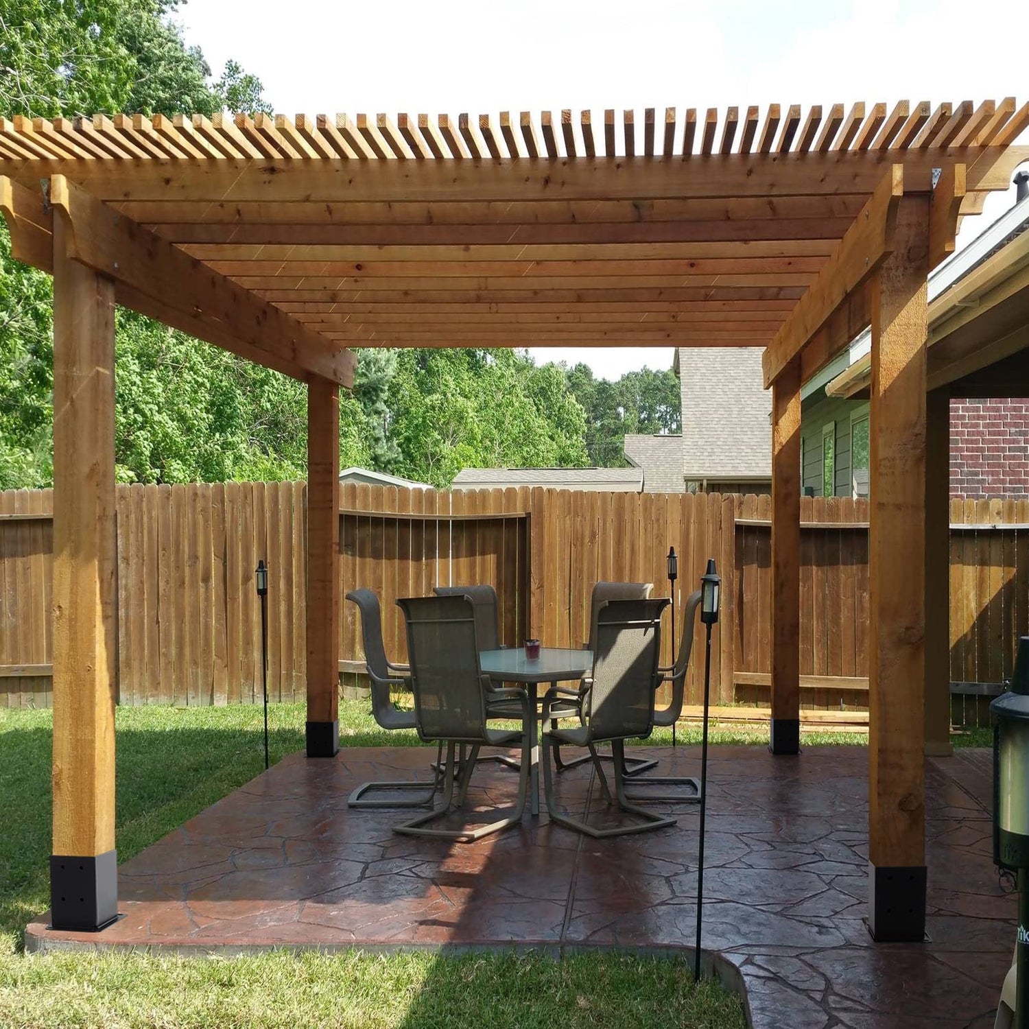 - Package Content: A wrench. 24 x expansion anchors , 32 Phillips head self-tapping screws for 4x4 post fixation.All screws are inserted inside the base.