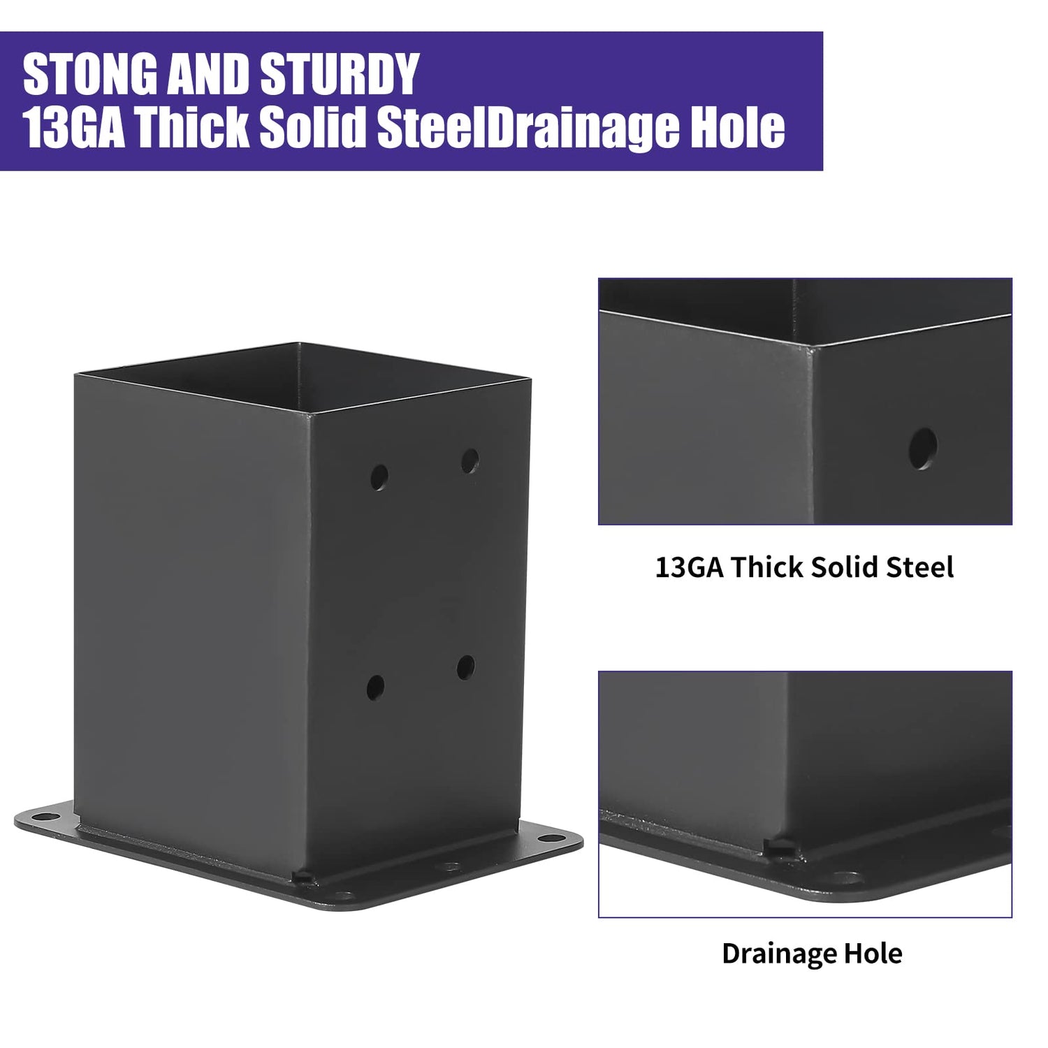 - Material Of Post Base:The post base is made of solid steel with a smooth black powder-coated surface for water and rust resistance. The black coating can improve the appearance of the post bracket aesthetically, extending the service life of the post base.