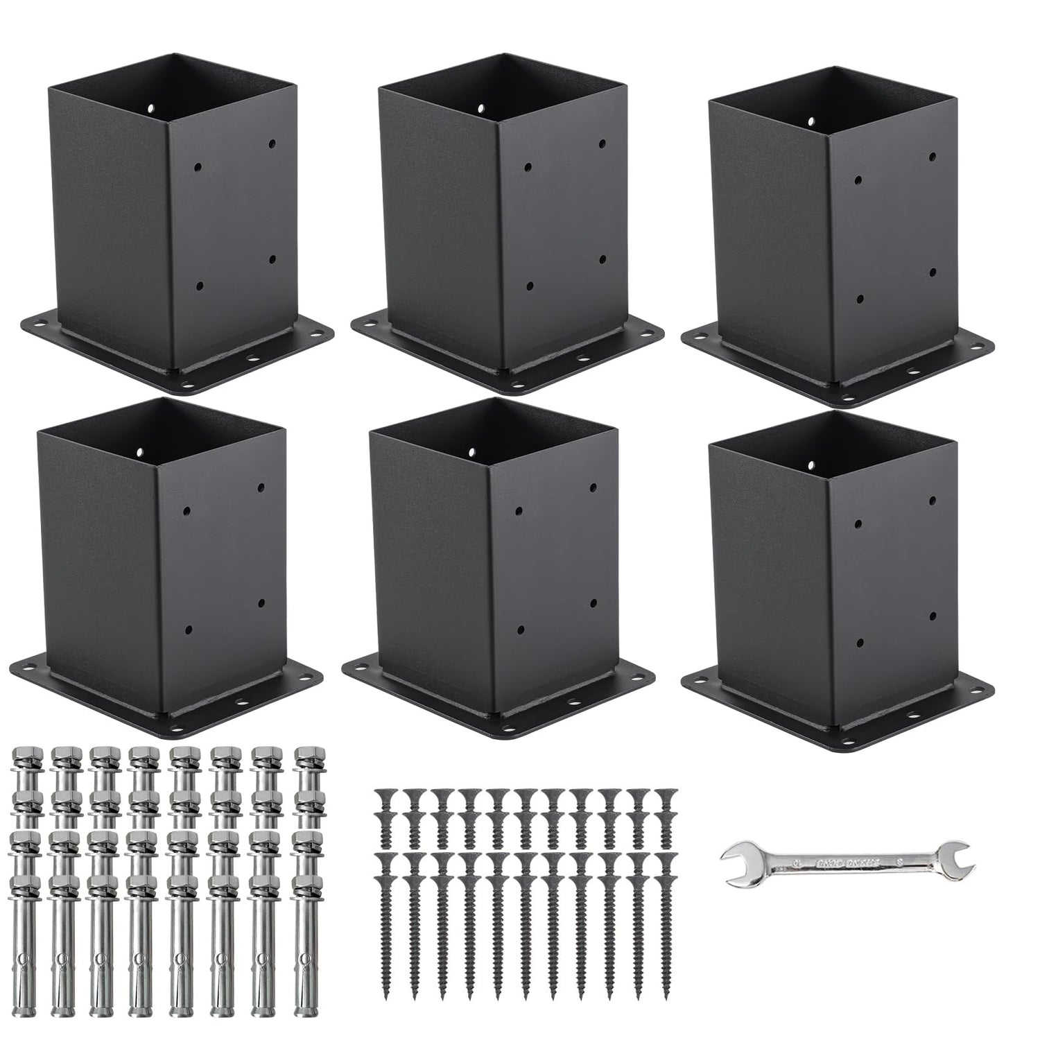 Nrspp 4x4 Post Base, 6 Sets Post Anchor, (Inner Size 3.5"x3.5") Black Metal Powder-Coated Deck Post Base Support for Outdoor Fence,Mailbox,Pergola Brackets Fence Kit
