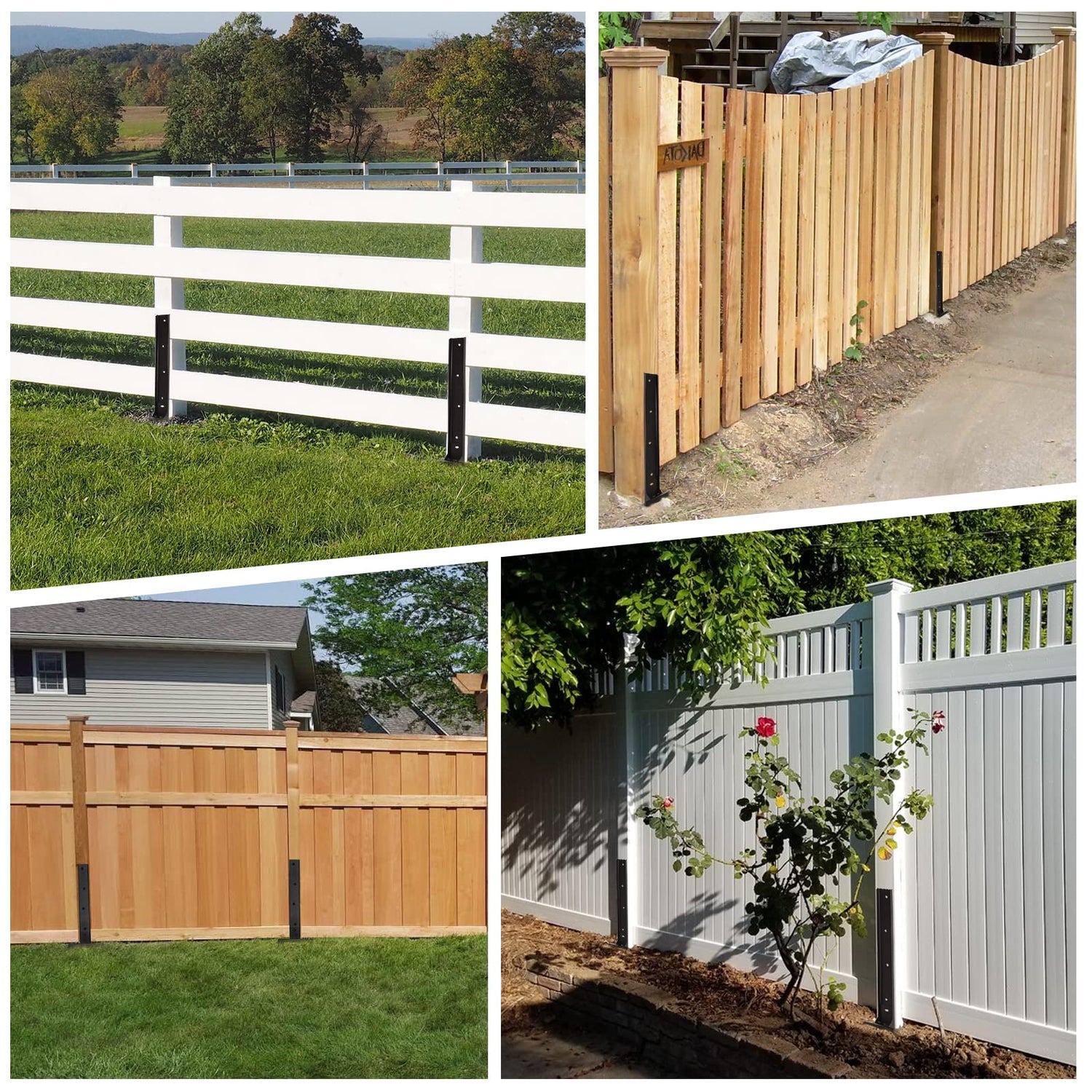- Materal:The Fence Repair Kit is made of U-shaped Q235B steel with black powder-coated.It's a very durable and stable material that maintains strong support in all weather conditions. The Fence Post mender effectively repairs wobbly or broken fence posts, avoiding the resulting damage and unsafe elements.