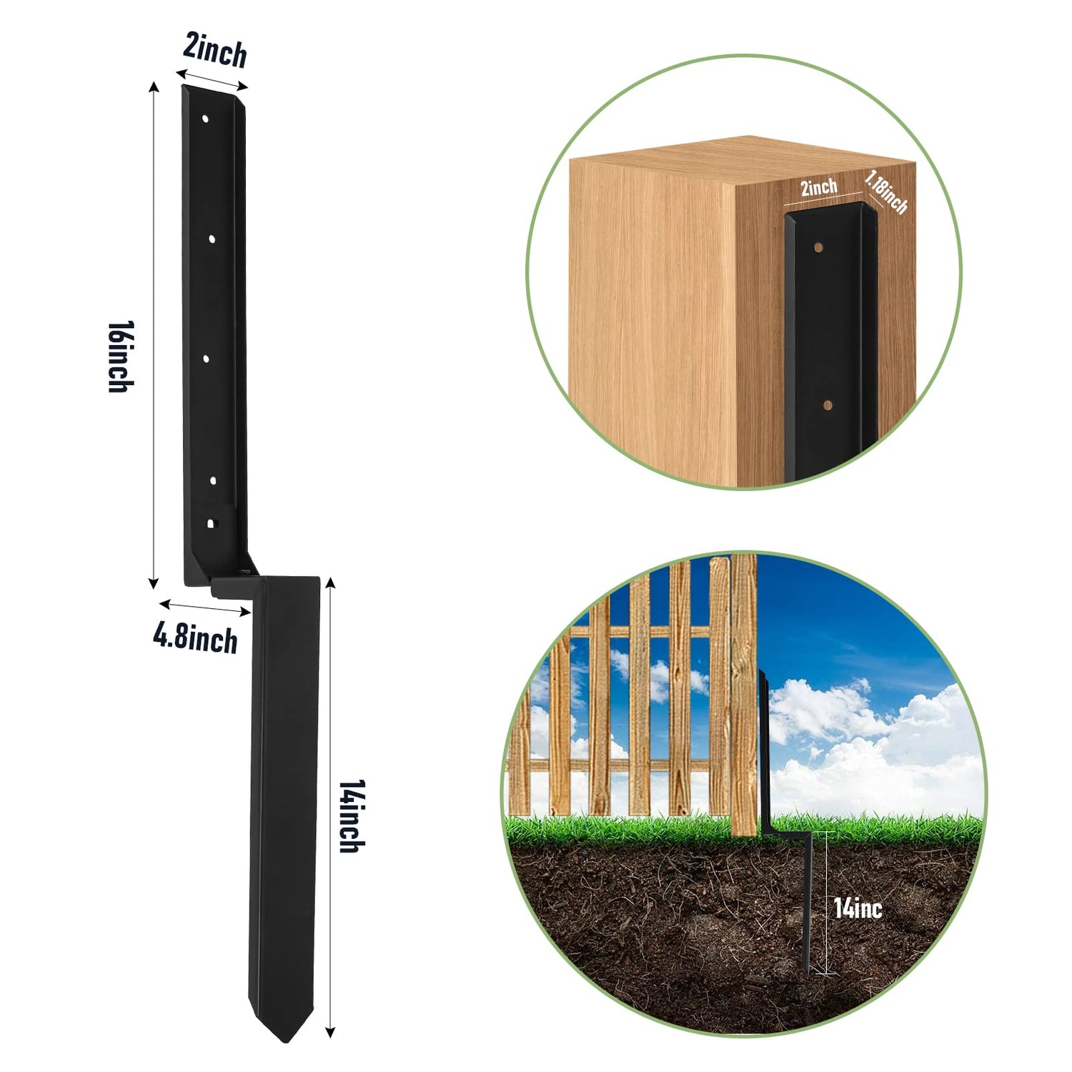 - Size Of Fence Post Repair Stakes: L/4.8" x W/2" x H/30" (Deep Ground Size: 14"), Qty: 2Pcs
