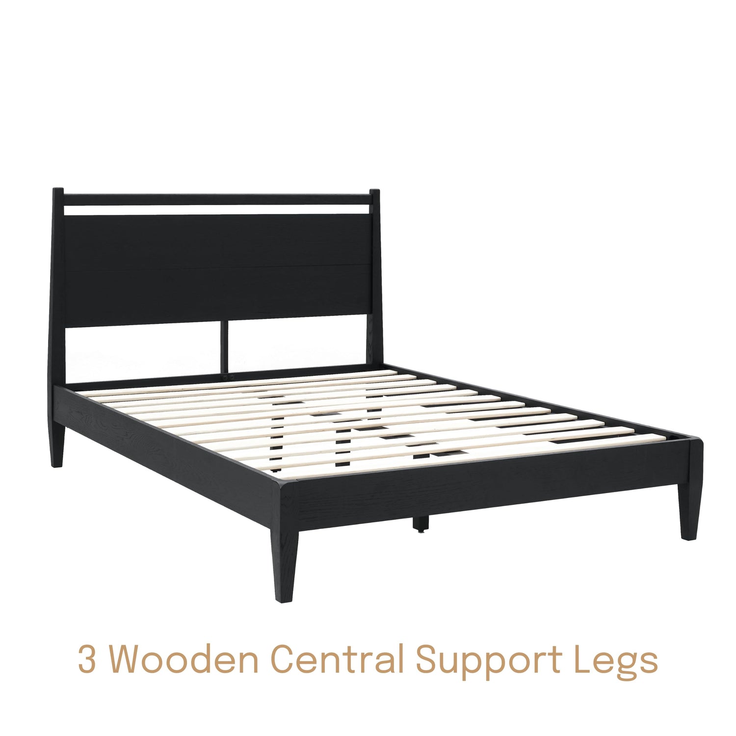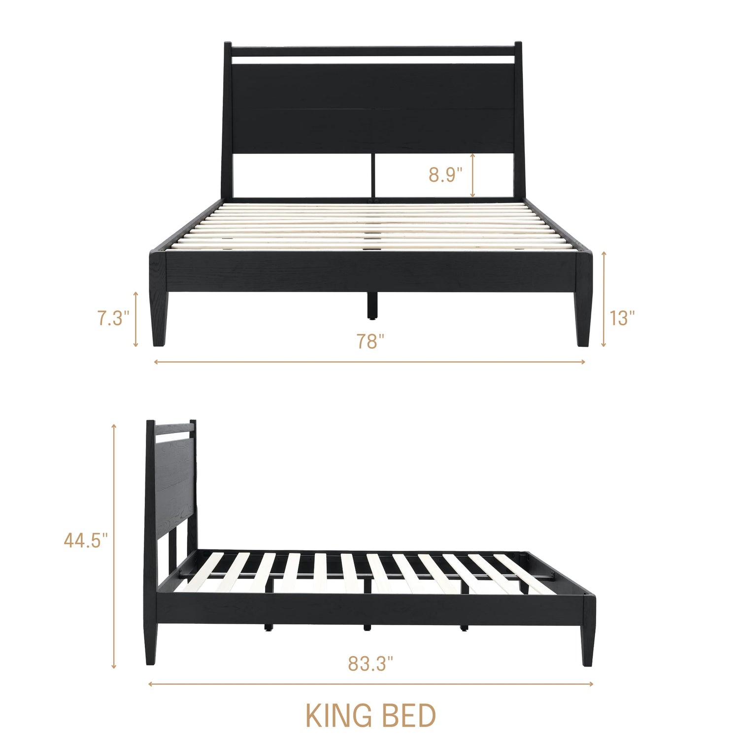 NTC Adept King Wooden Bed Frame with Headboard - Solid Oak, Silent Slats, Effortless Assembly, Burnt Black