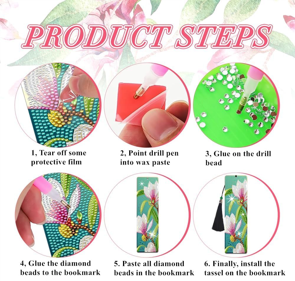 - Security: Diamond art bookmarks are designed rounded corners to protect your hands from scratches and your books from being damaged during use. After the diamond art bookmark is finished, the diamond beads will cover the entire bookmark, and there will be no problem of sticking to your book