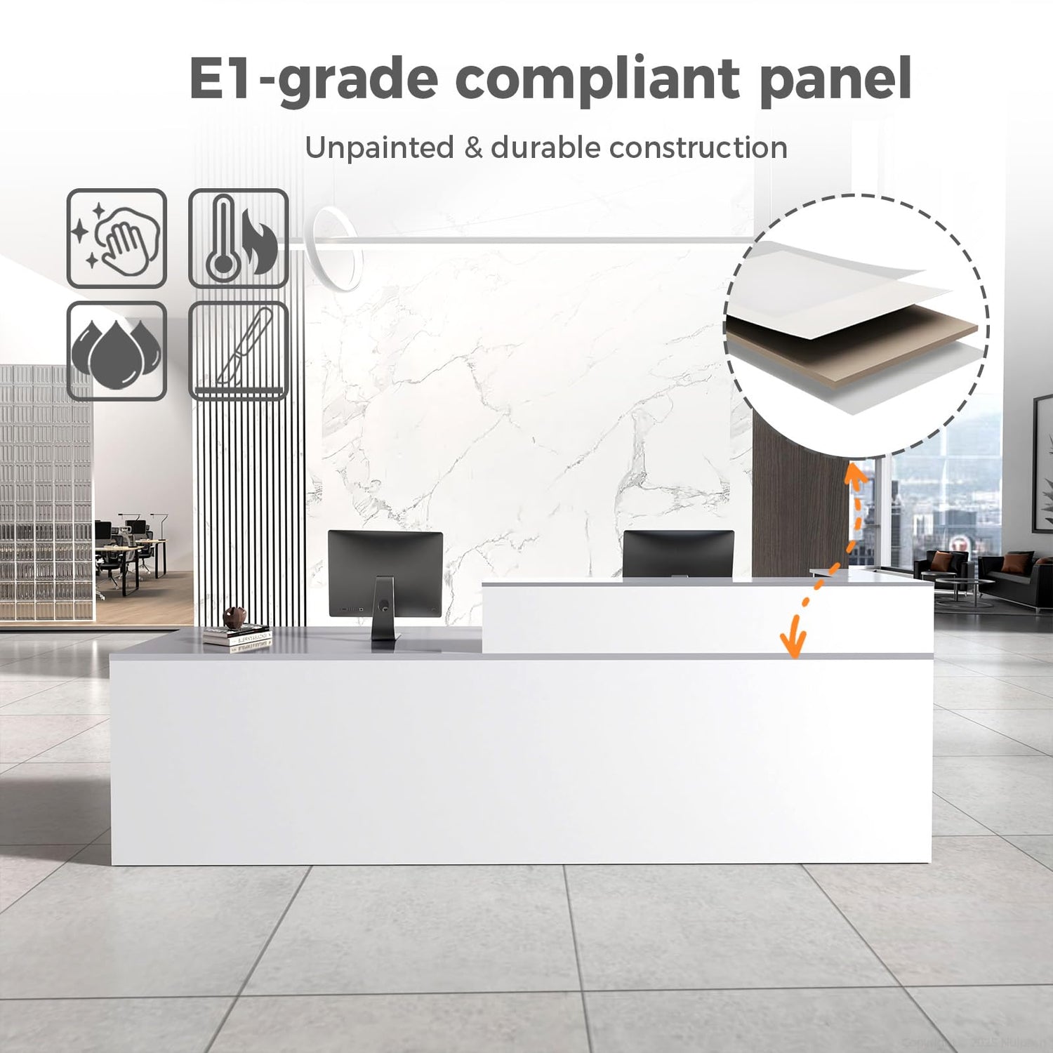 - 【Durable E1-Grade Material】 Made from premium E1-grade compliant panel, the desk resists scratches, heat, and moisture—ensuring long-lasting elegance in high-traffic reception areas.