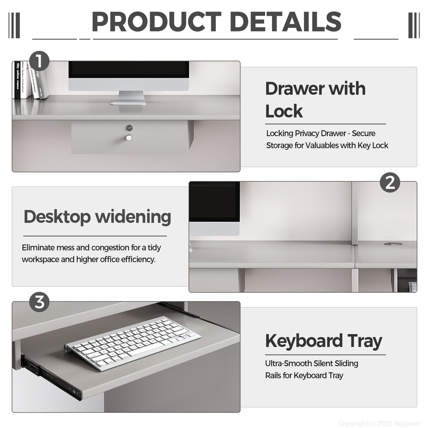 - Versatile Storage Solutions:This reception desk offers versatile storage options to keep your office supplies organized. The double tabletop design, lockable drawer, and keyboard tray ensure that all your essentials are neatly stored and easy to access.