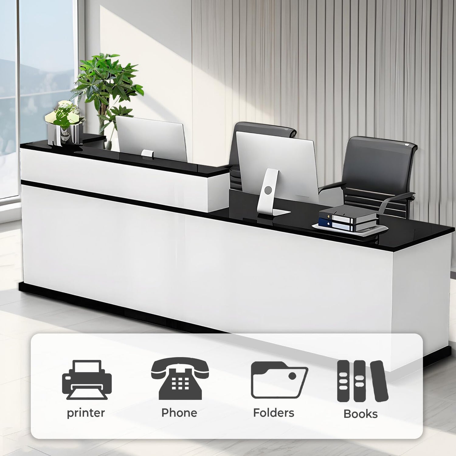 Nuipesn Reception Desk,Front Reception Counter Desk Checkout Office Desk with Lockable Drawer Reception Table Wooden Computer Desk for Office (Pure White+Black/Left,70.87" L*23.62" W*39.37" H)