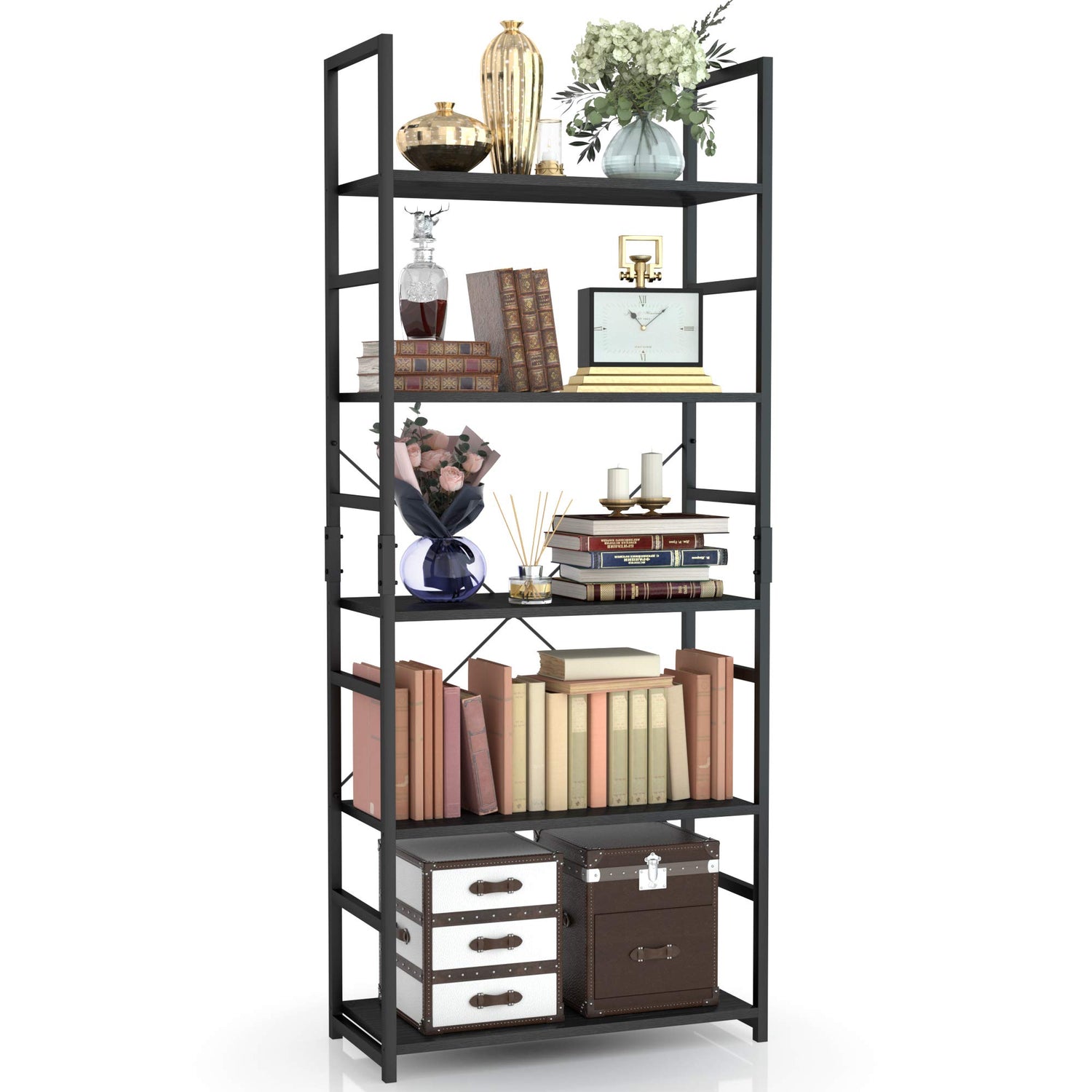- 【High-Quality Metal Frame & Fixed Rod Assembly】Constructed by premium metal and selected particle board, the contemporary metal bookcase is solid, stable, sturdy, and durable; With top notch anti-rust coating, the whole shelf looks more sophisticated; With an excellent metal frame and thick solid panel, each panel of the bookcase can hold up to 30 lbs; Because of the fixed rod assembly, the industrial shelf has strong stability and can perfectly protect your items; No shaking No wobbling