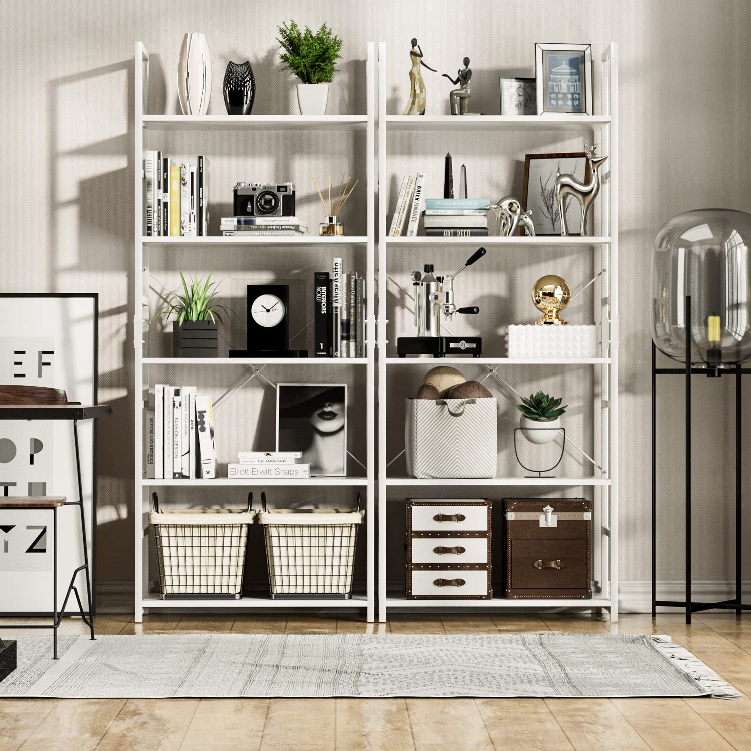 - 【High-Quality Metal Frame & Fixed Rod Assembly】Constructed by premium metal and selected particle board, the contemporary metal bookcase is solid, stable, sturdy, and durable; With top notch anti-rust coating, the whole shelf looks more sophisticated; With an excellent metal frame and thick solid panel, each panel of the bookcase can hold up to 30 lbs; Because of the fixed rod assembly, the industrial shelf has strong stability and can perfectly protect your items; No shaking No wobbling