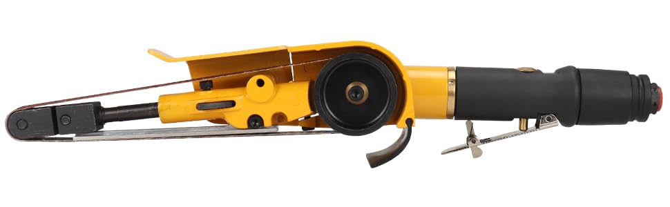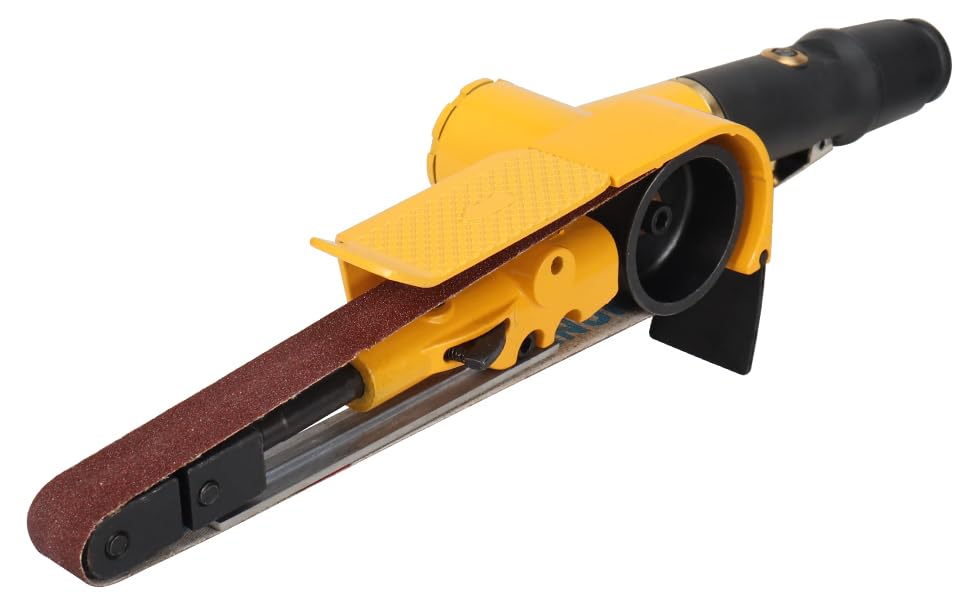 - đăApplicationsă: Pneumatic belt sander is mainly used for sanding, cutting, deburring and polishing metal products, steel, copper and aluminum, plastics, synthetic materials, glass, wood and stone. It is very effective for narrow space and concave corner work.
