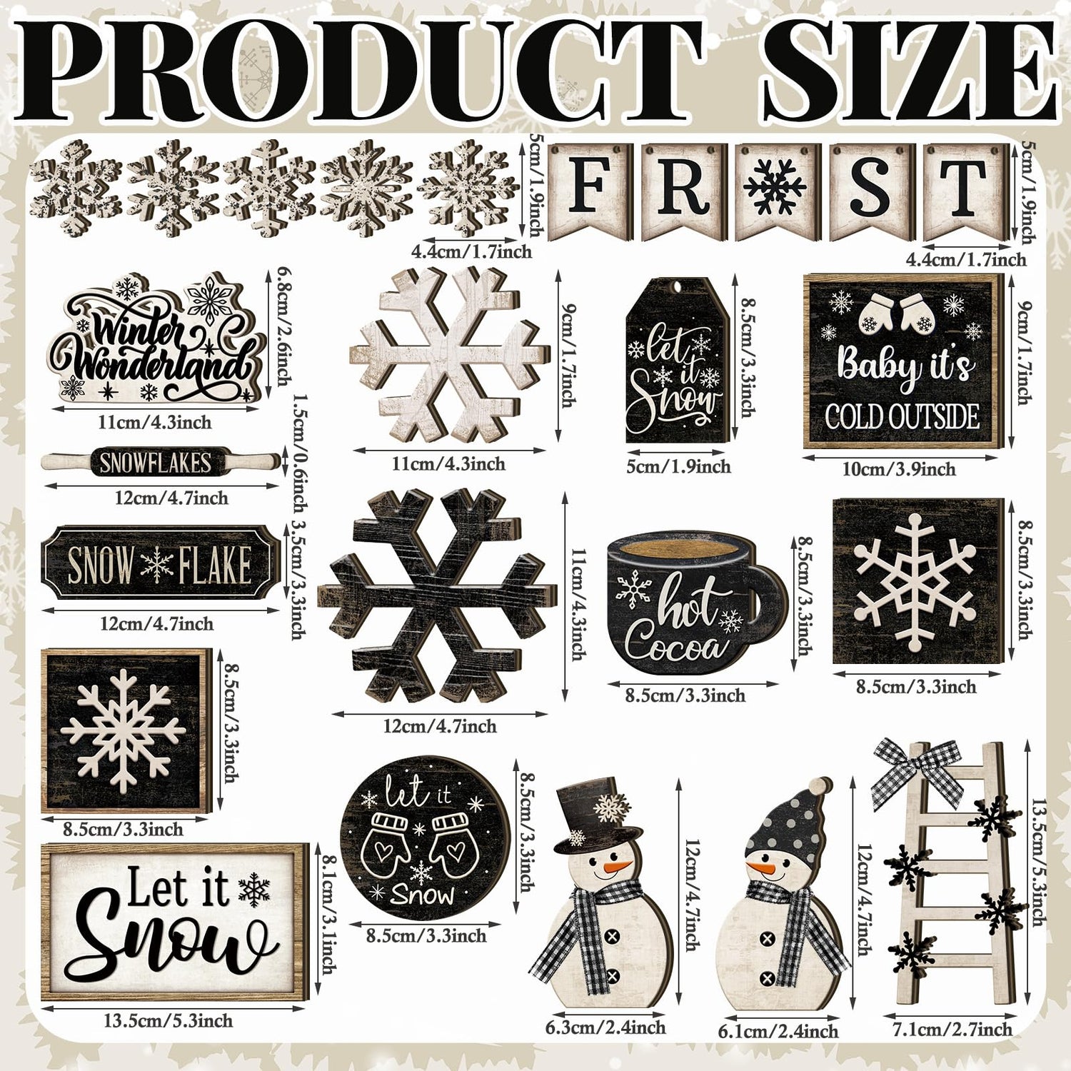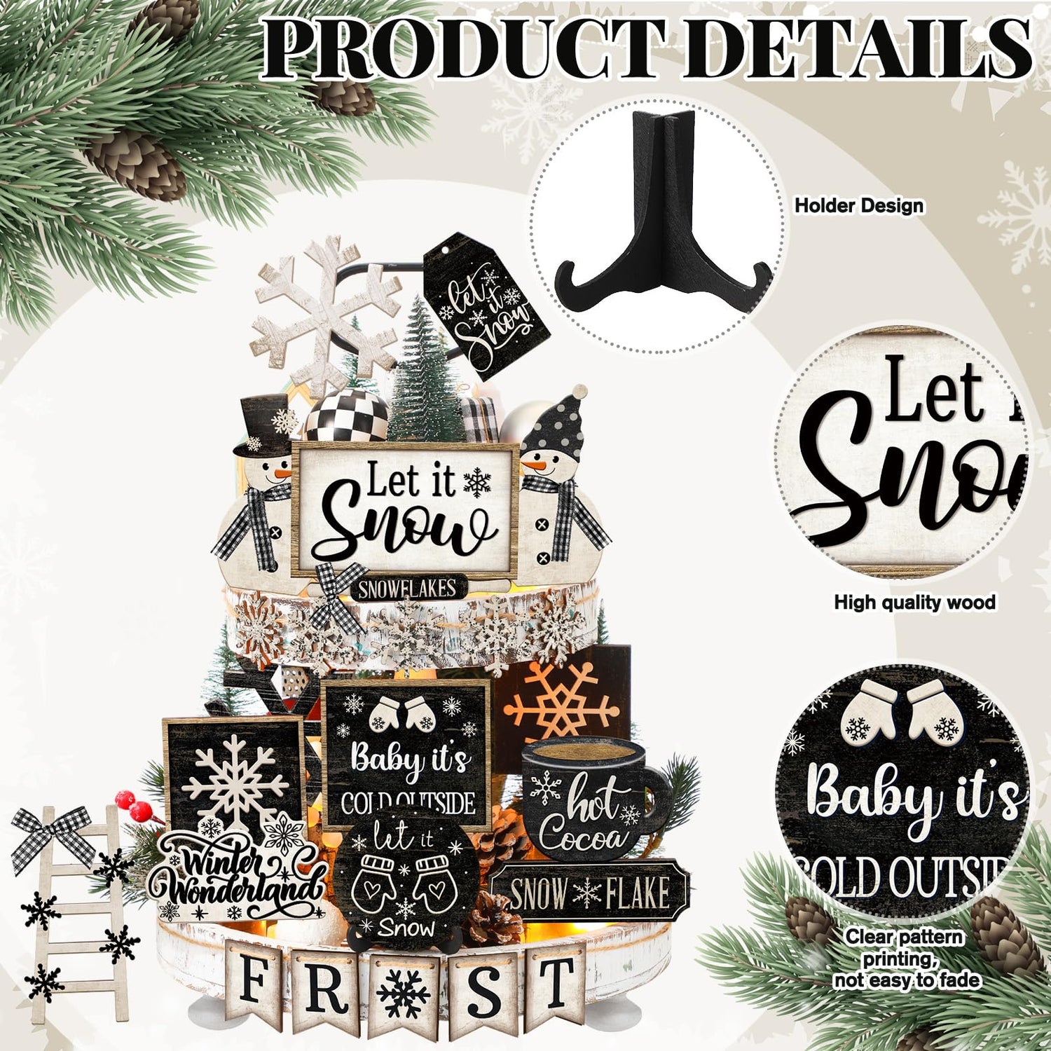 Nuogo 25 Pcs Christmas Winter Tiered Tray Decor Wood Rustic Winter Decoration for Home Christmas Snowflake Table Shelf Farmhouse Let It Snow Decor Xmas Snowman Signs for Table Holiday