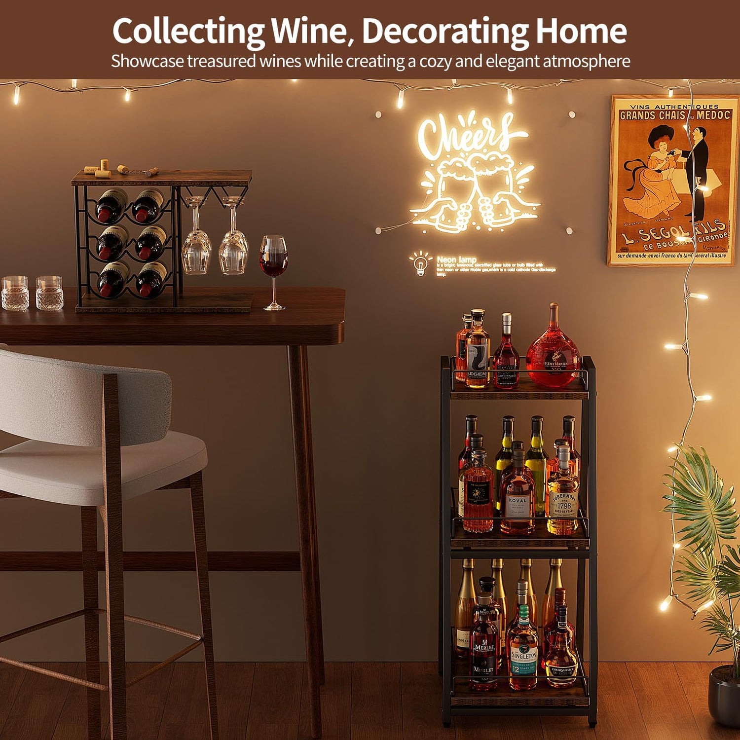 - Vintage and Practical: Vintage style 3-tier trapezoid liquor stand complements most of your furniture and can add a touch of elegant and classic charm to your home. Floor standing wine rack displays your treasured wine beautifully and neatly, keeping your room more organized and making each bottle look like a carefully selected piece of art.