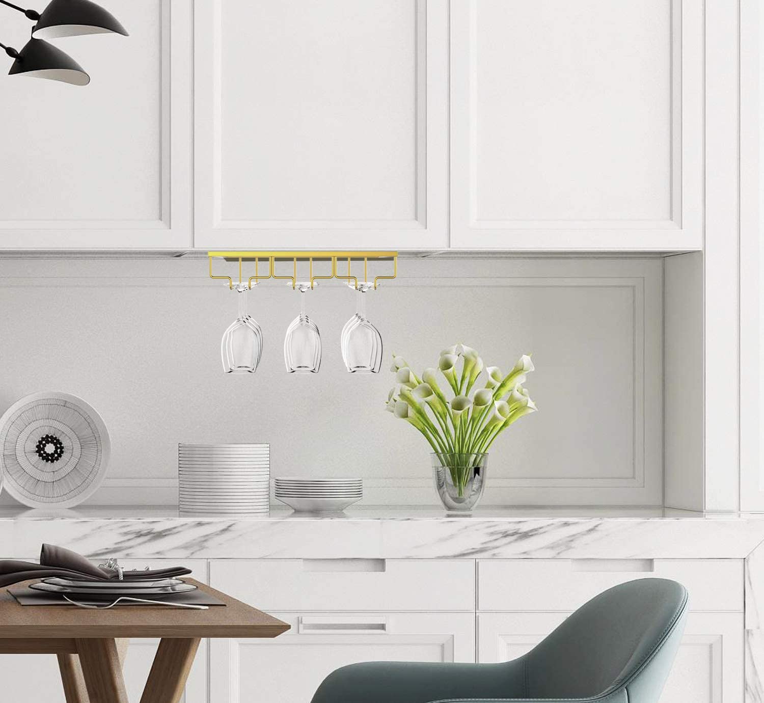 - Space Saving: Our wine glass rack can save cabinet space and fit the corner under shelf perfectly, which offer you a neat and modern style kitchen, cabinet or mini bar.