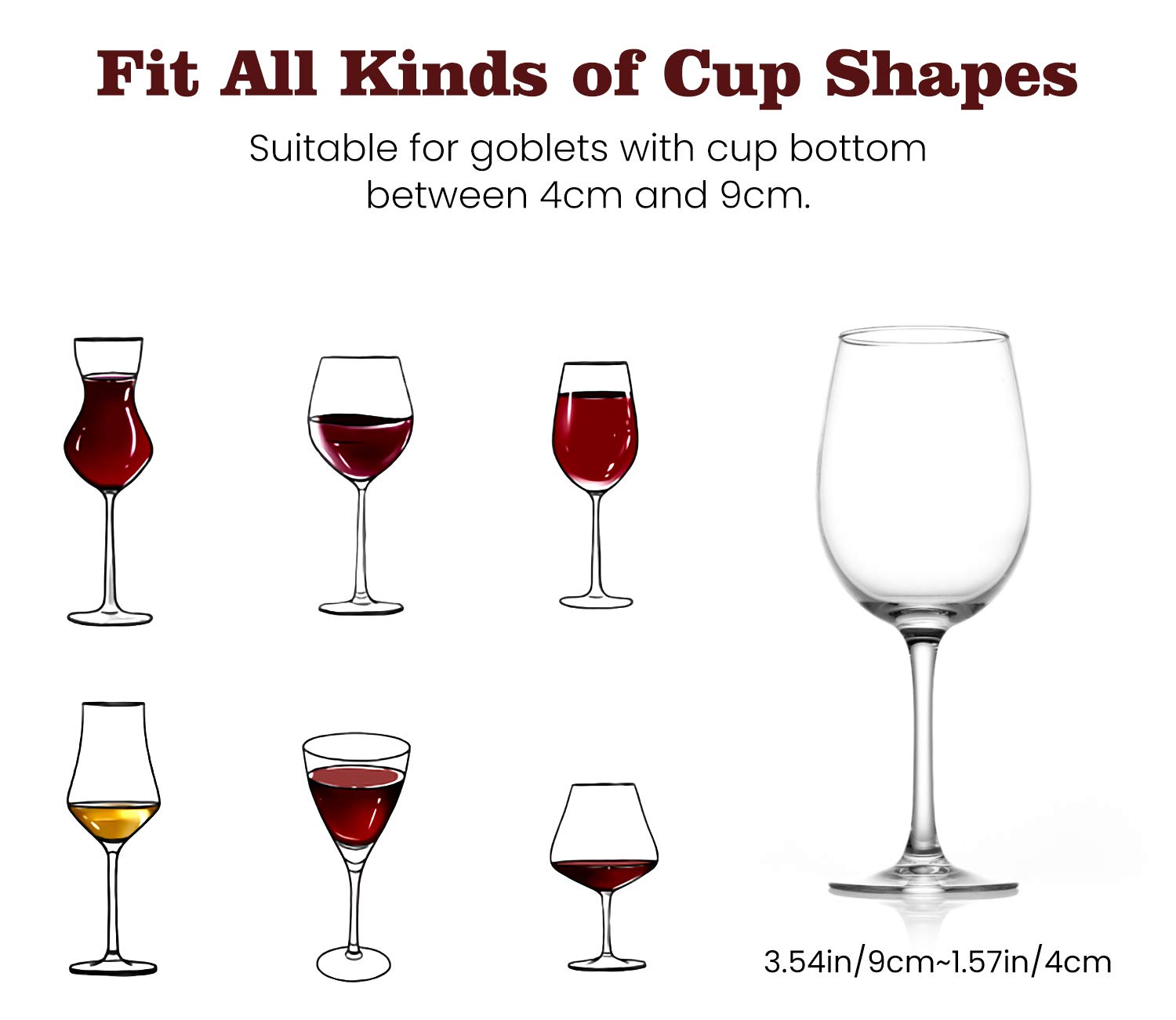 - Fit Kinds of Cup Shapes: Suitable for goblets with cup bottom between 4 cm and 9 cm. It also fit for a variety of glass types like Cocktail glasses, Bordeaux glasses, Burgundy glasses, Champagne glasses, etc.