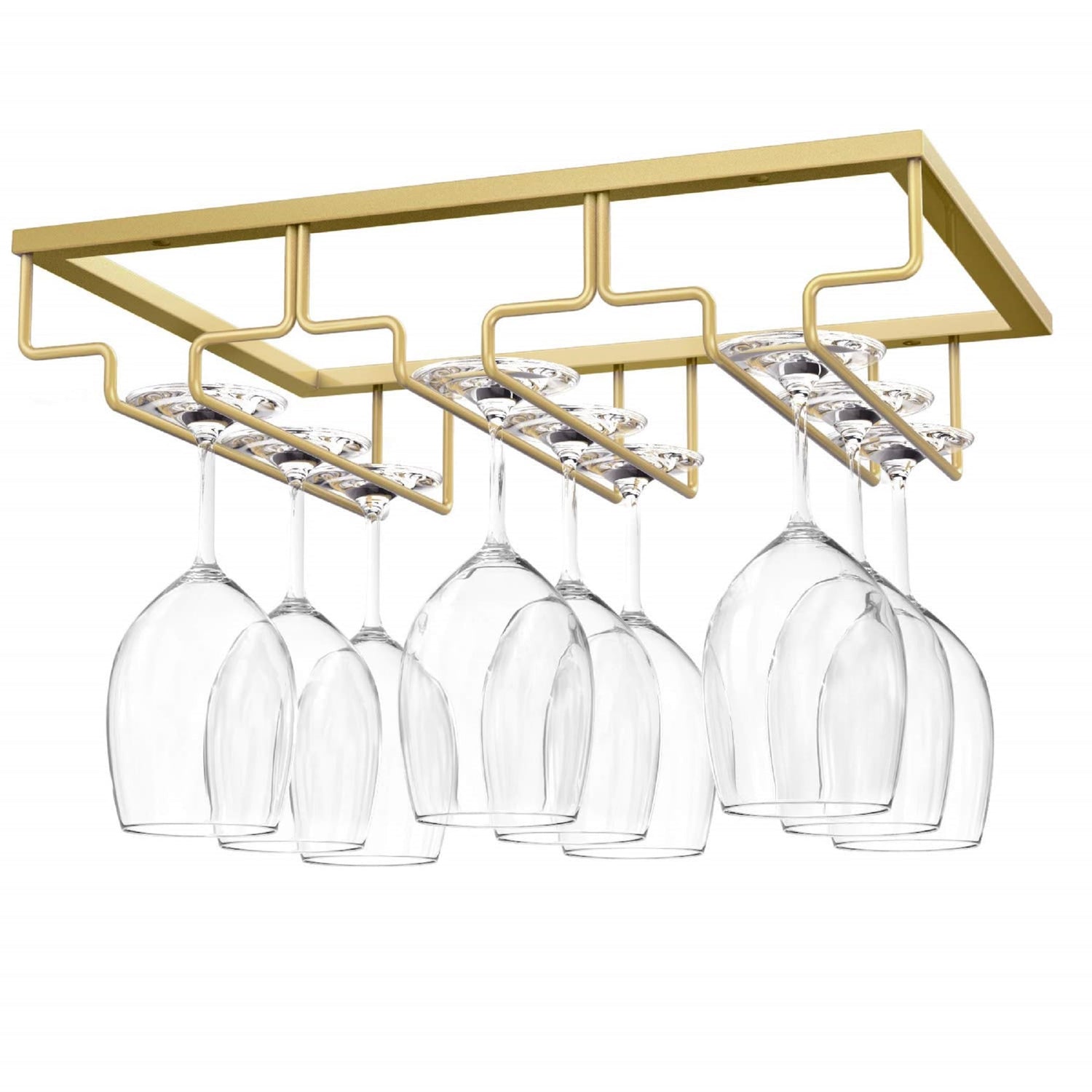 Nuovoware Wine Glass Rack - Under Cabinet Stemware Wine Glass Hanger Rack Holder for Bar Kitchen Cabinet, 3 Rows - Gold