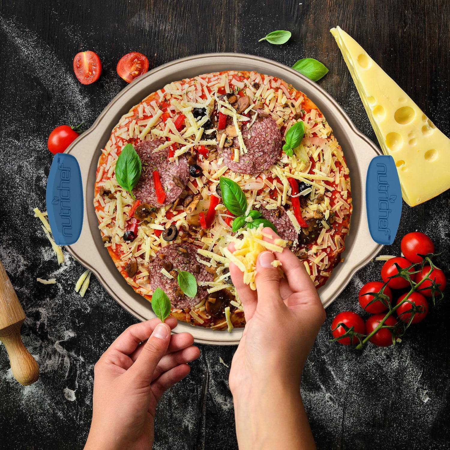 NutriChef 10-Piece Nonstick Bakeware Set - Premium Carbon Steel Baking Trays w/Heatsafe Silicone Handles, Includes Pizza Crisper, Loaf Pan, 12 & 24 Cup Muffin Pans, Round/Square Pans, Cookie Sheets